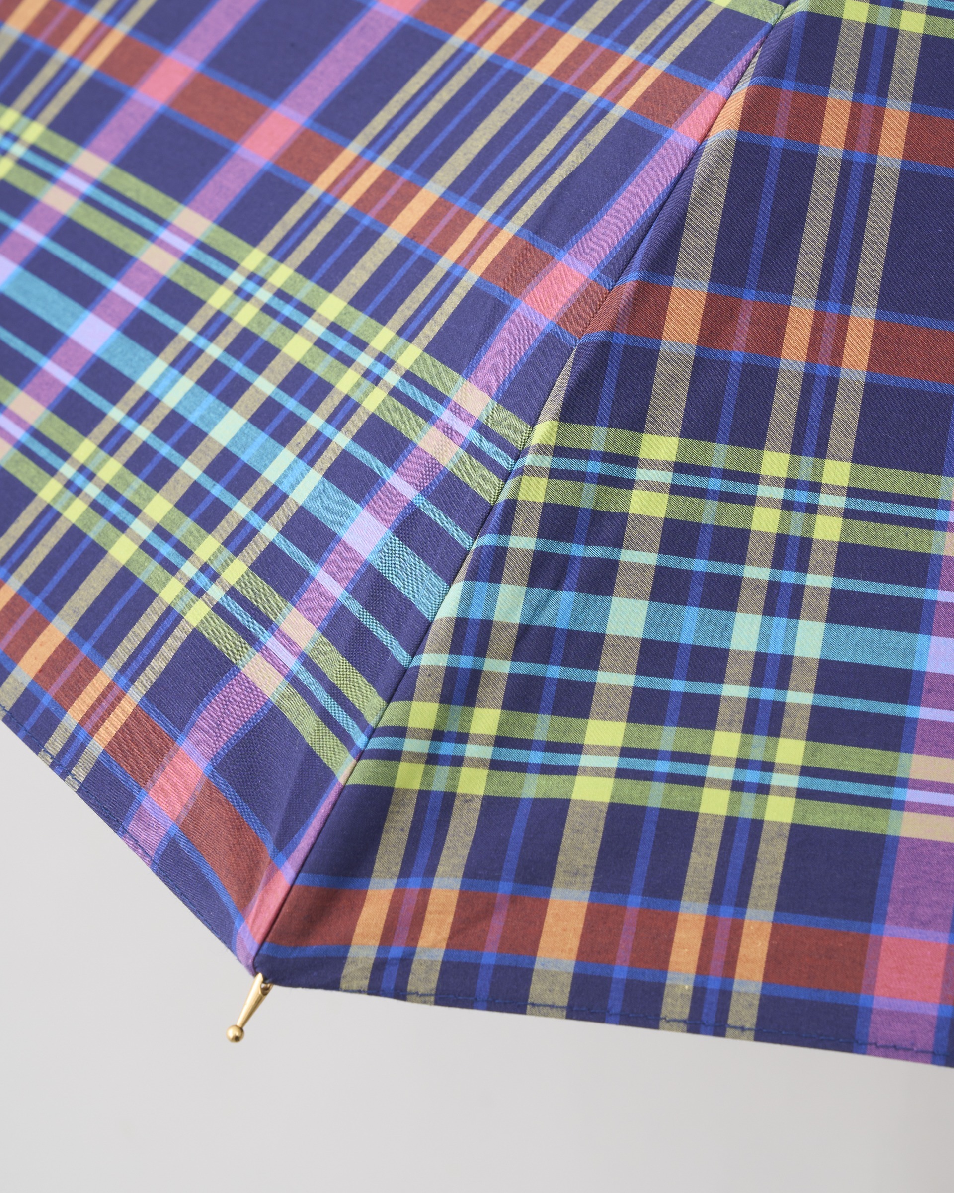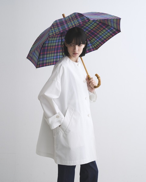 こちらのアンブレラバンブーは、傘生地加工を施したコットンの鮮やかな先染めチェック素材を採用しています。雨傘としてはもちろん、UVカット加工が施されているので日傘としてもお使いいただける晴雨兼用モデルです。