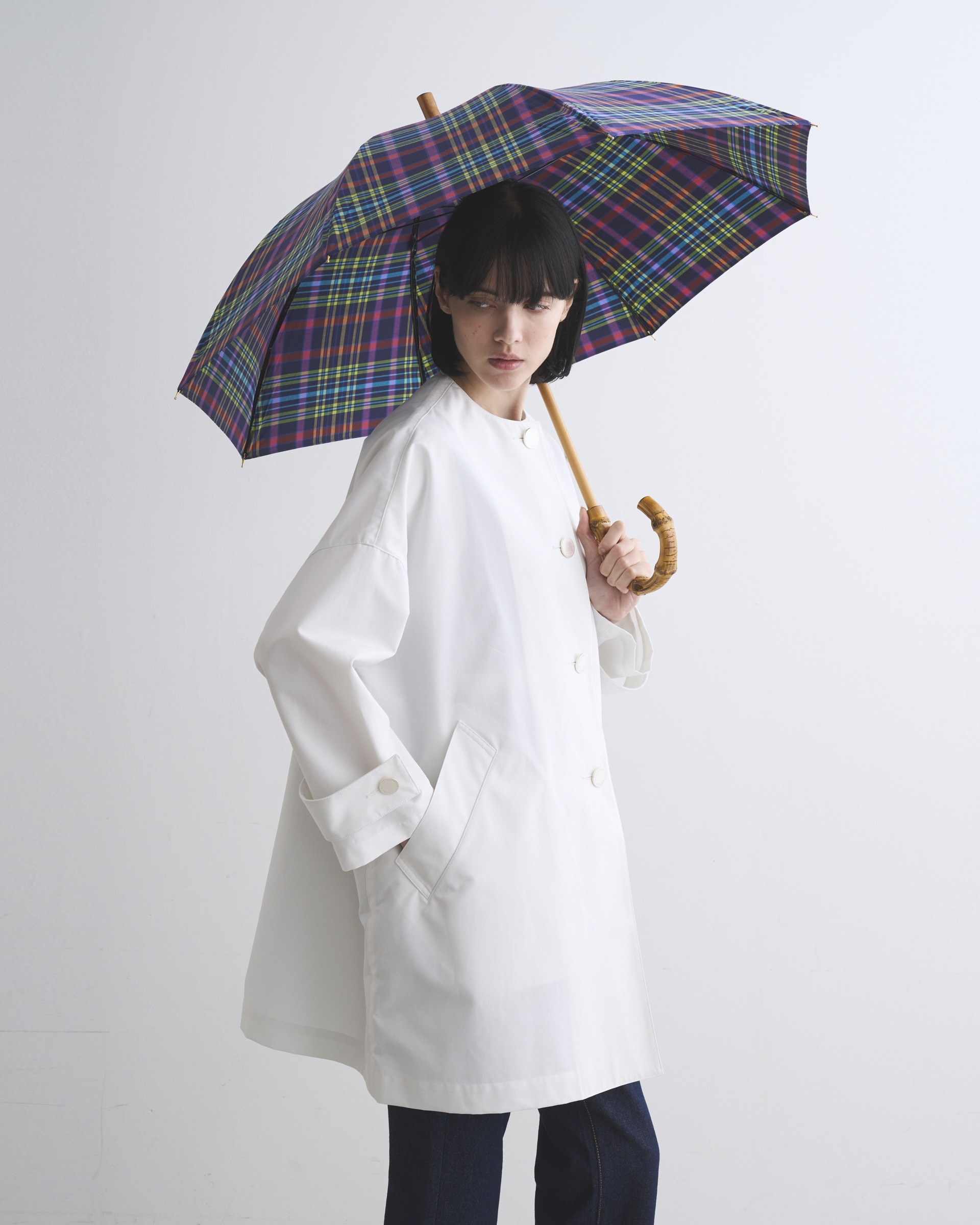 ブランドを代表するバンブーハンドルの長傘、アンブレラ バンブー に、英国らしいカラフルなチェック柄が新登場。