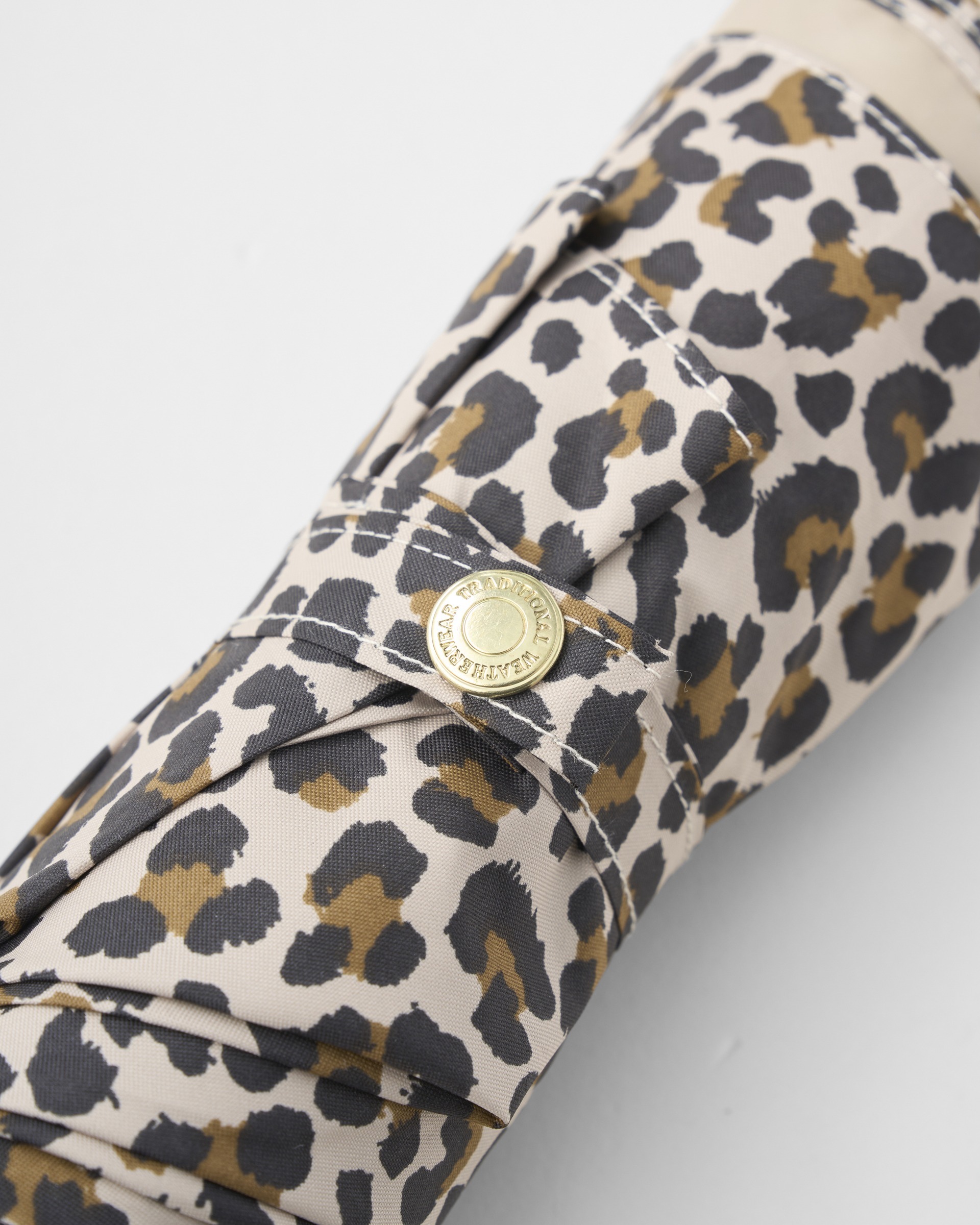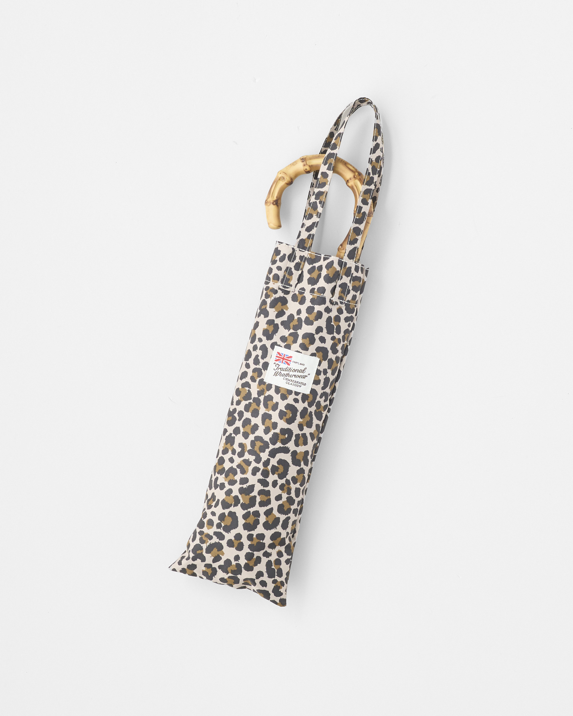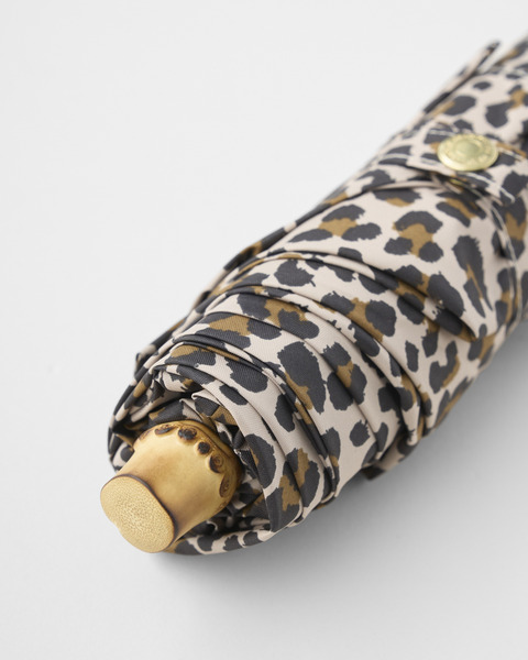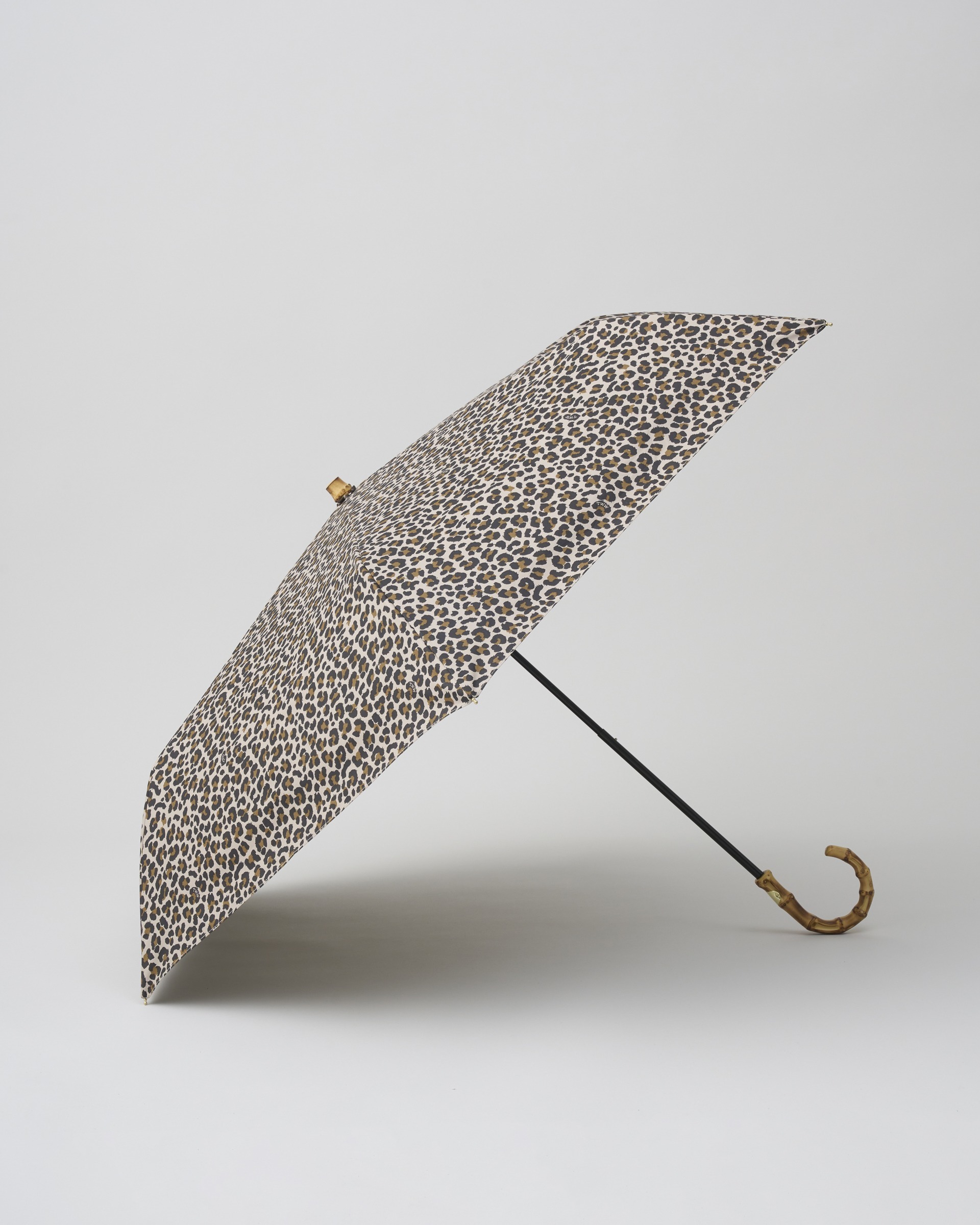 こちらの新モデルは、レオパード(表)×ベージュ(裏)の配色が魅力で、クラシックな表情はそのままに、軽くて紫外線も防げる晴雨兼用の優れものです。従来の「FOLDING BAMBOO」と比べて、広げた時の大きさはそのままですが、折り畳み時の大きさは約10cm小さくなり、持ち運びやすいサイズになっています。傘生地の表面に特殊な加工を施しているので、雨傘としてはもちろん、日傘としてもお使いいただけます。濡れた傘でもストレス無く持ち運べる、便利なケース付き。