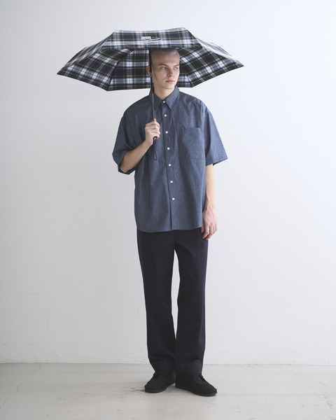 こちらの新モデルは、クラシカルな表情とスポーティーな雰囲気を兼ね備えているので、ドレス感のある装いから、カジュアルなデニムスタイルまで活躍する万能モデルです。グラスファイバー・アルミニウムの2種類の素材を組み合わせた骨を採用することで強度と軽さの両方を実現しています。ライトウエイトアンブレラよりも5㎝長い55㎝の親骨を使用しているので、男性でも充分なサイズになっています。