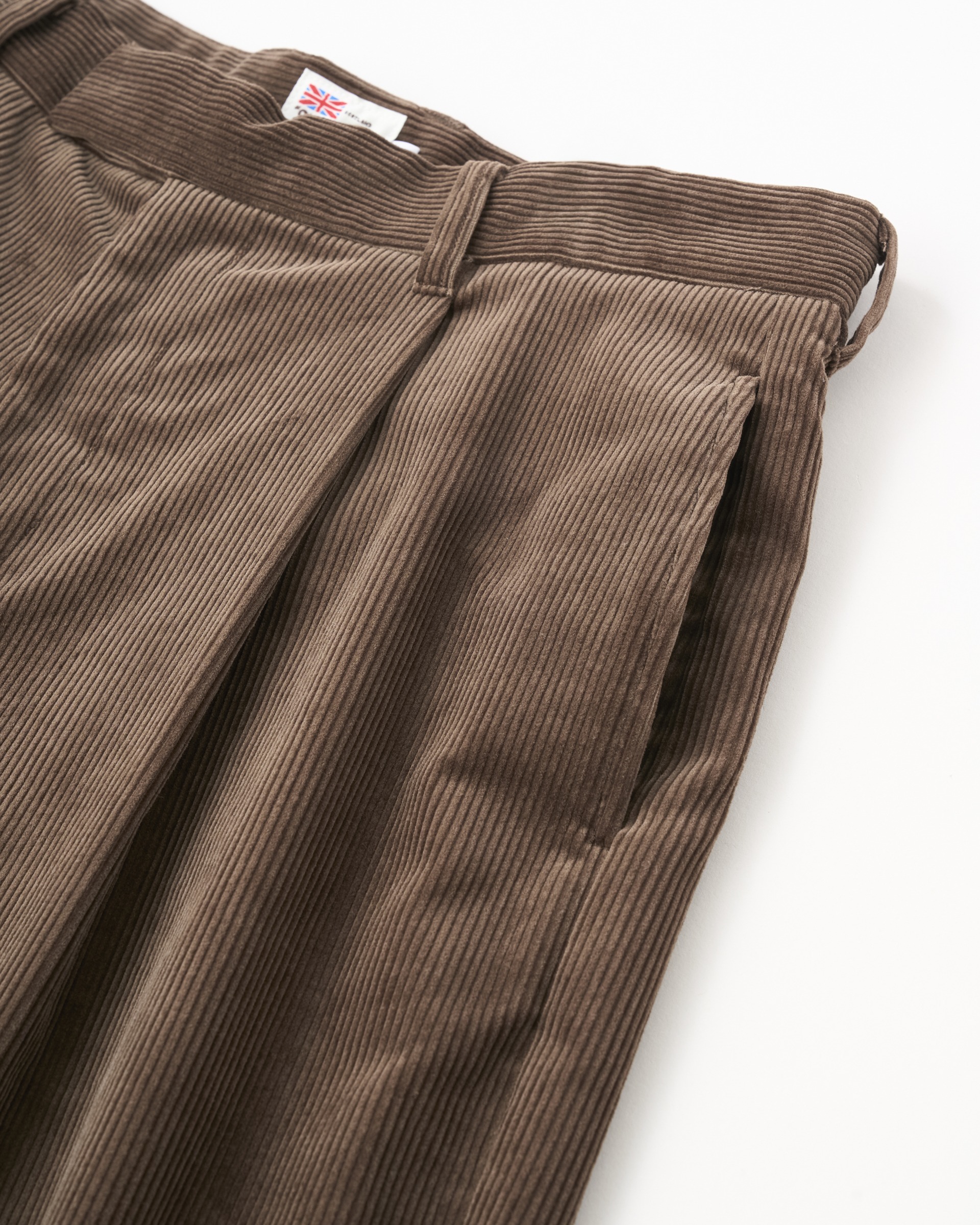 コーデュロイ製のユニオンスラックは、大人気のタックセミワイド(102)、ワイドストレート(106)の2つのシルエットがラインナップ。