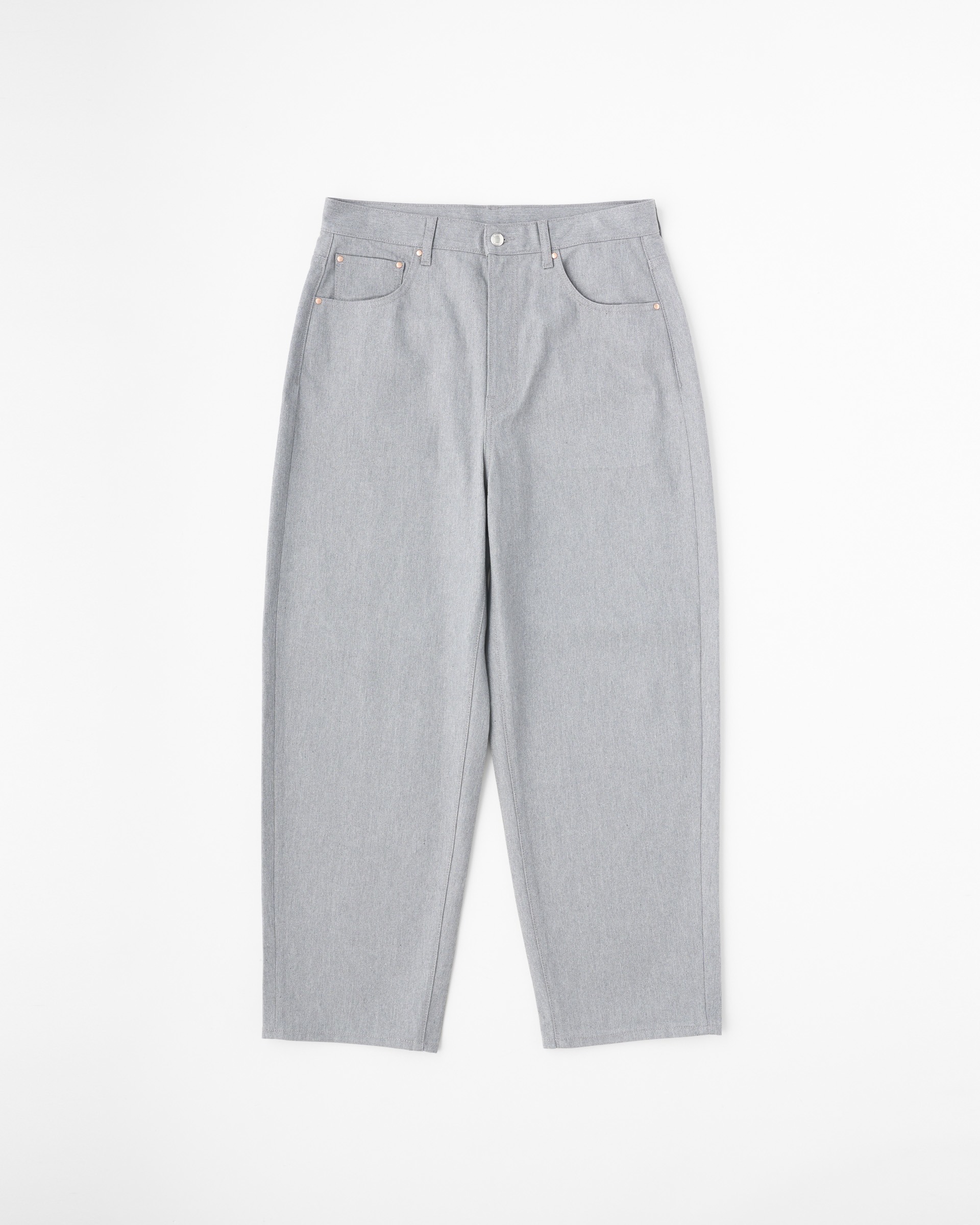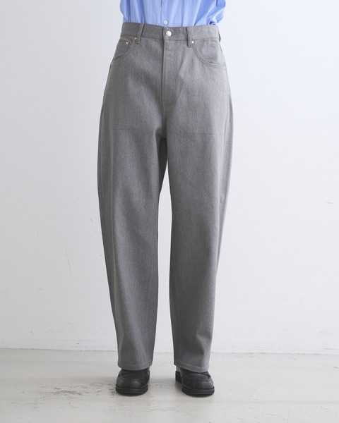 こちらのユニオンスラック112は、丸みのあるシルエットが魅力のテーパードパンツです。フロントポケットの下からサイドシームにそって緩やかにカーブする美しいシルエットが特長です。スクエアなヒップポケットを右に一つのみ配置したすっきりとしたデザインで、全てのポケットに配したコッパーリベットがきらりと光ります。経に杢糸を使用した表情のあるデニム素材は、カジュアルになり過ぎずモダンな印象に。