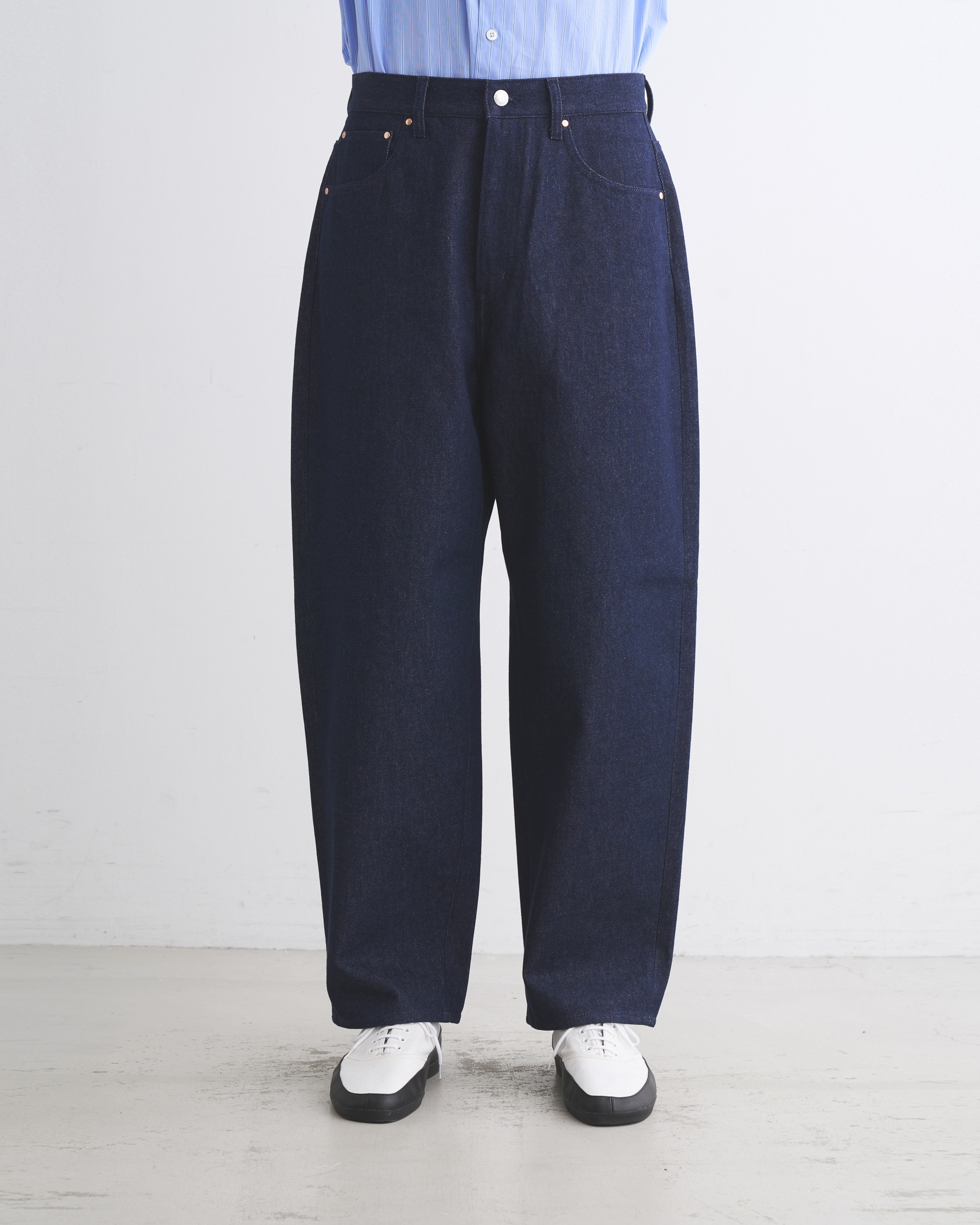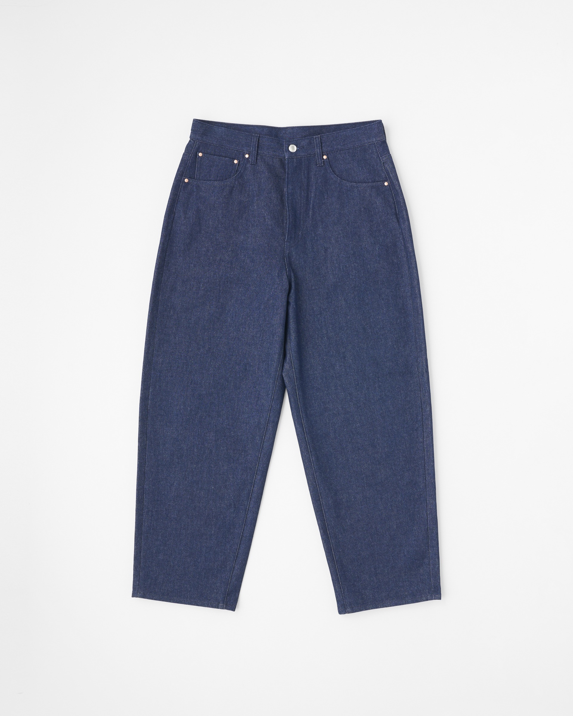こちらのユニオンスラック112は、丸みのあるシルエットが魅力のテーパードパンツです。フロントポケットの下からサイドシームにそって緩やかにカーブする美しいシルエットが特長です。スクエアなヒップポケットを右に一つのみ配置したすっきりとしたデザインで、全てのポケットに配したコッパーリベットがきらりと光ります。生地の状態でワンウォッシュしてから縫製しているので、アタリが少なくクリーンな印象に。