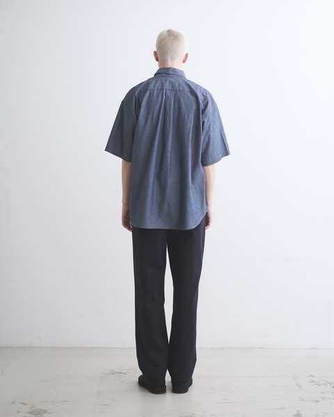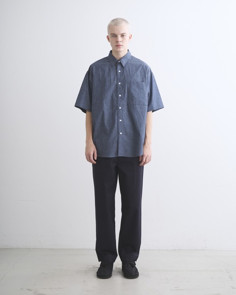 小ぶりな襟とボクシーなワイドシルエットが特長のレギュラーカラーのシャツです。左胸に大きなスクエアポケットを1つだけ配すことで、モダンでミニマルな印象を与えます。素材には上質な原料を高密度に織り上げたコットンダンガリーを採用、ハリのある生地から立体的な美しいシルエットが生まれます。
