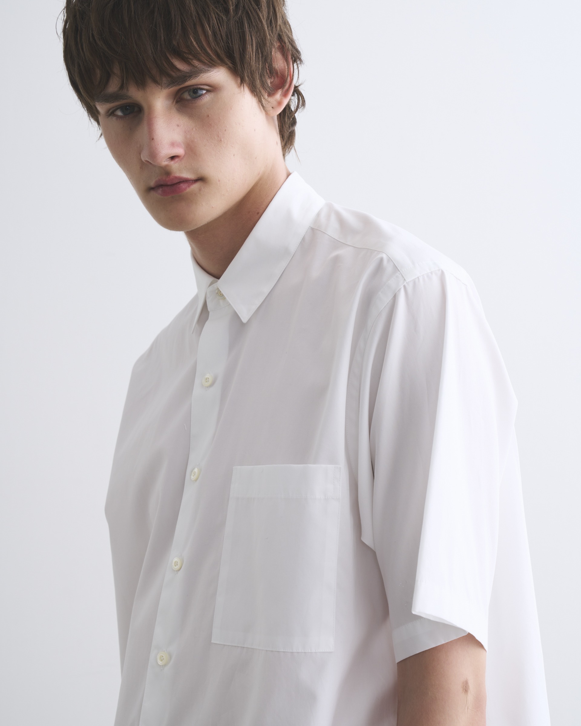 クリーンで清涼感のあるこちらのレギュラーカラーシャツは、ドレス感のある装いからカジュアルなデニムスタイルまで活躍する、着る人を選ばない万能シャツです。細番手の繊細な糸を高密度に織り上げたコットンのポプリン素材なのでしっかりとしたハリがあり、立体的なシルエットが際立ちます。肌触りもドライで通年使用できる優れものです。