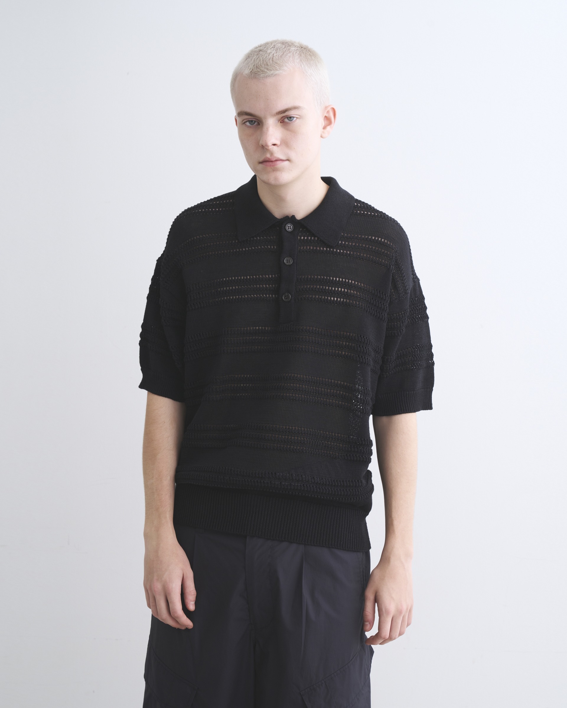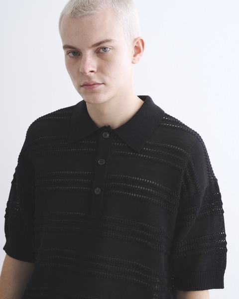 清涼感のあるクリーンなニットポロシャツ、ヘイルズワース ショート スリーブ 。 こちらはコットンの糸を鹿の子と呼ばれる組織で丁寧に編むことで、カジュアル感と上品さを叶えた万能なニットです。程よくゆったりとした肩回りと、すっきりとした着丈がモダンな印象に。鹿の子組織は表面の凹凸感が特長で、ドライな手触りで真夏も快適に着用できる優れもの。ご家庭での洗濯も可能です。