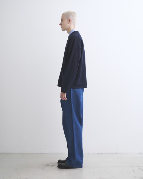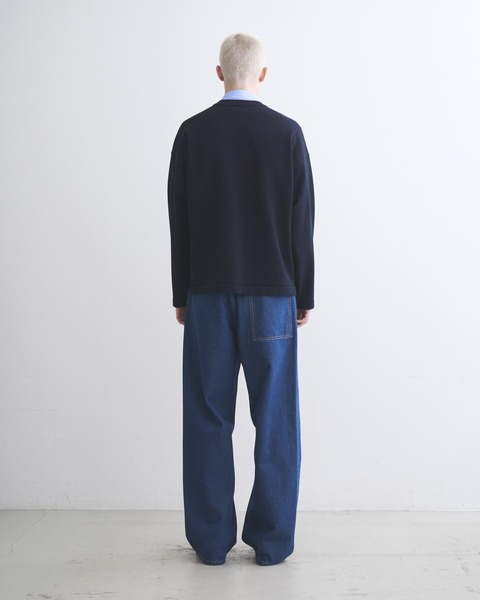コットンとポリエステルをバランスよく用いて高密度に編むことで、ハリと軽さと発色の良さを叶えたアウターウェアのような仕上がりのニットが生まれます。クルーネックに少しゆったりめなボクシーなシルエットが、クリーンですっきりとした印象を与えます。こちらのしっかりと編まれたニットは、ドライな手触りで季節に関係なく活躍します。ご家庭での洗濯も可能です。