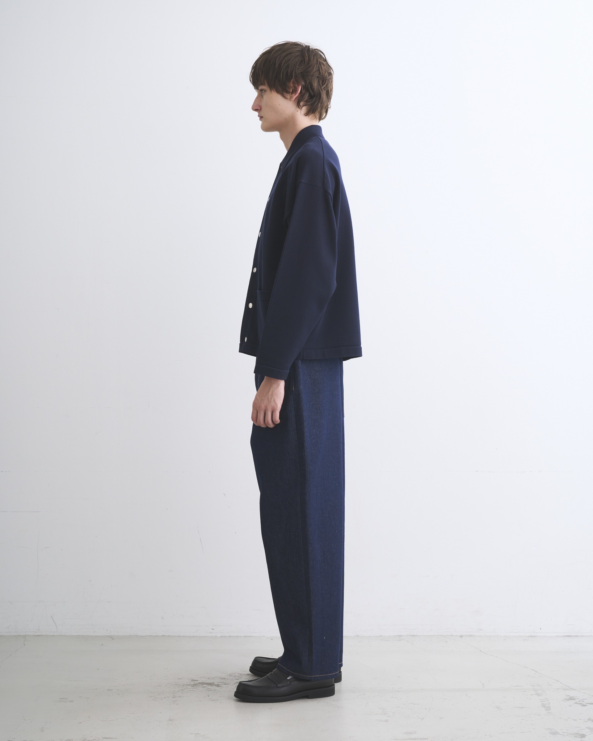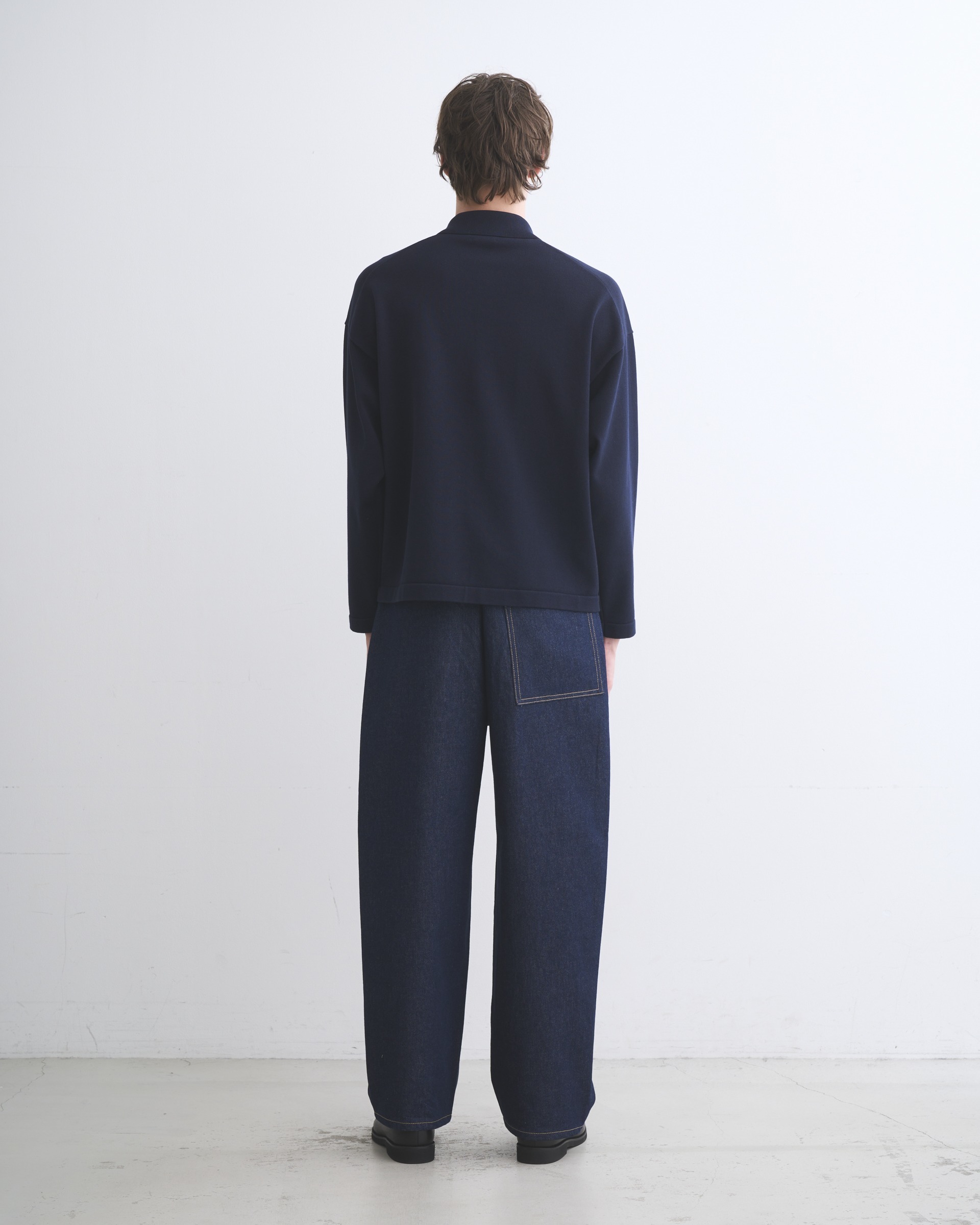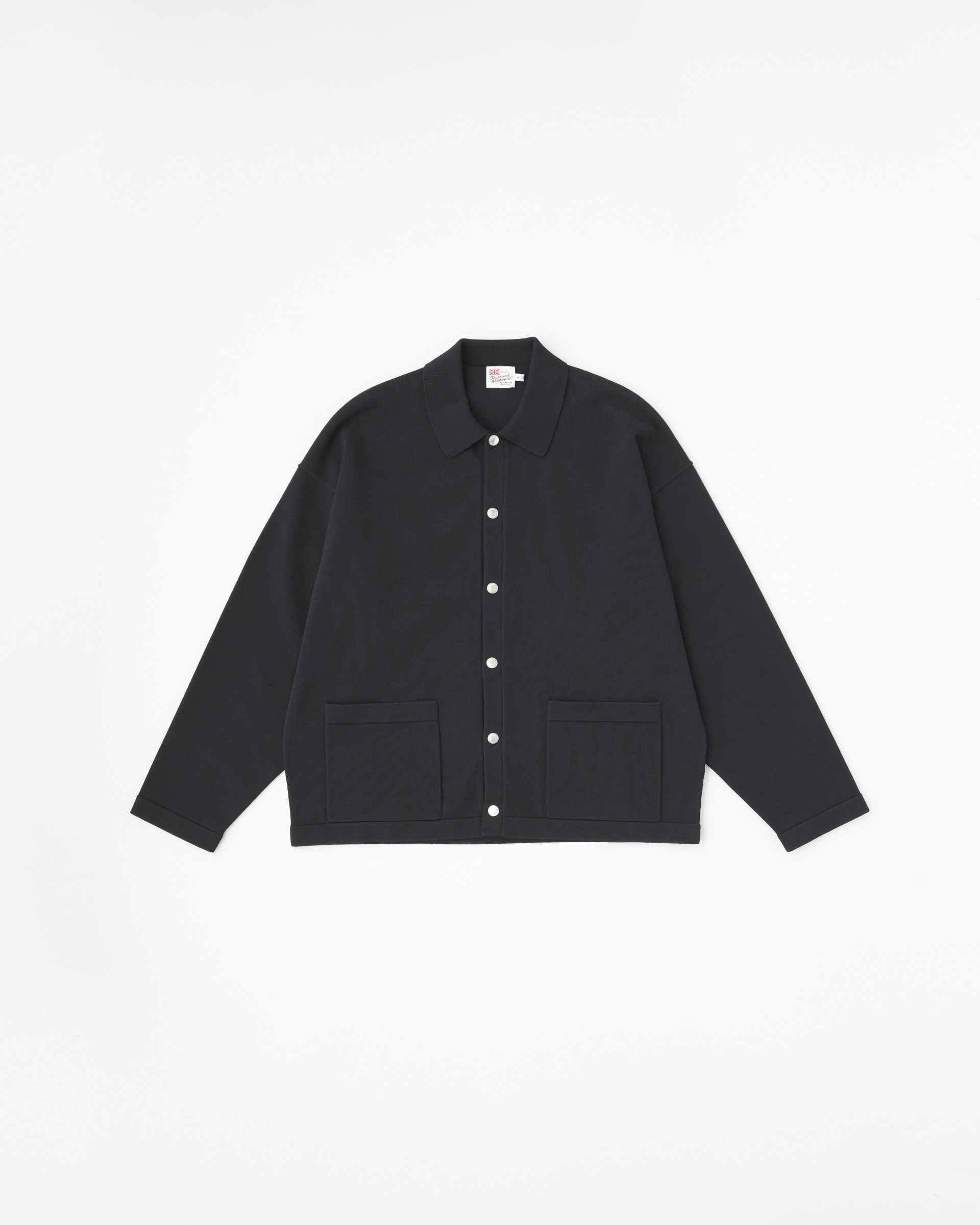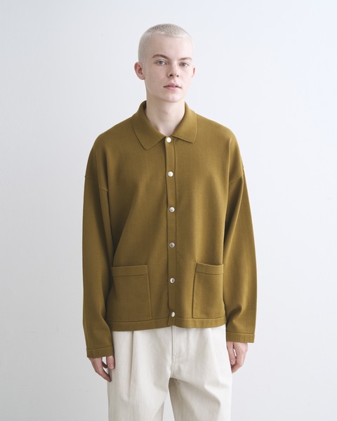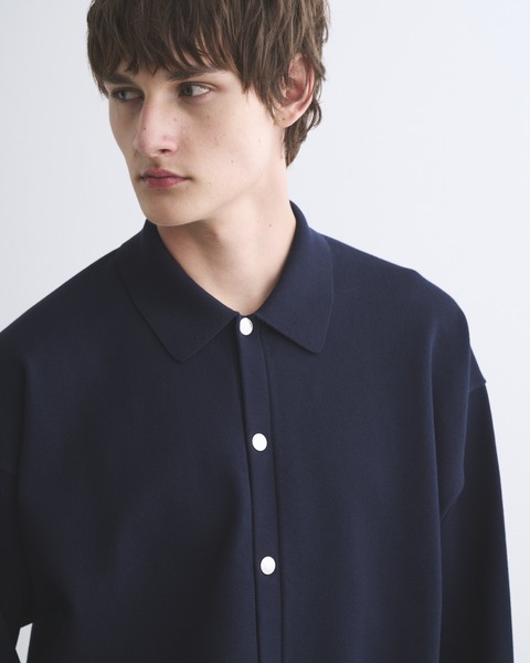 コットンとポリエステルをバランスよく用いて高密度に編むことで、ハリと軽さと発色の良さを叶えたアウターウェアのような仕上がりのニットが生まれます。きちんと感のある襟付きのデザインに、少しゆったりめなボクシーなシルエットが、クリーンでスポーティーな印象を与えます。こちらのしっかりと編まれたニットは、ドライな手触りで季節に関係なく活躍します。ご家庭での洗濯も可能です。