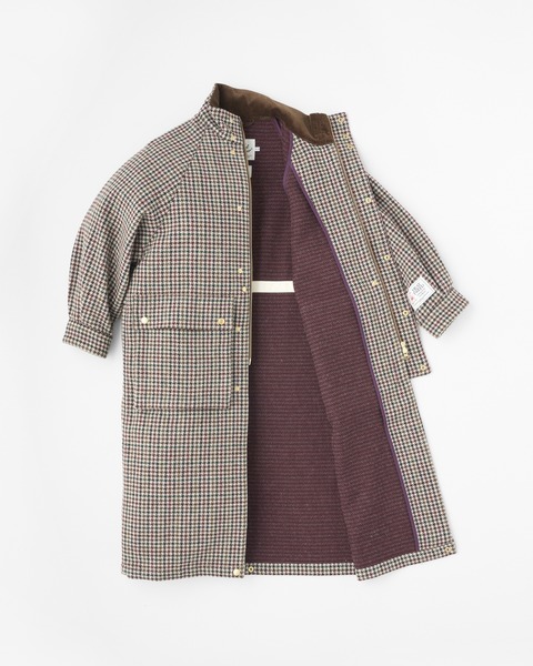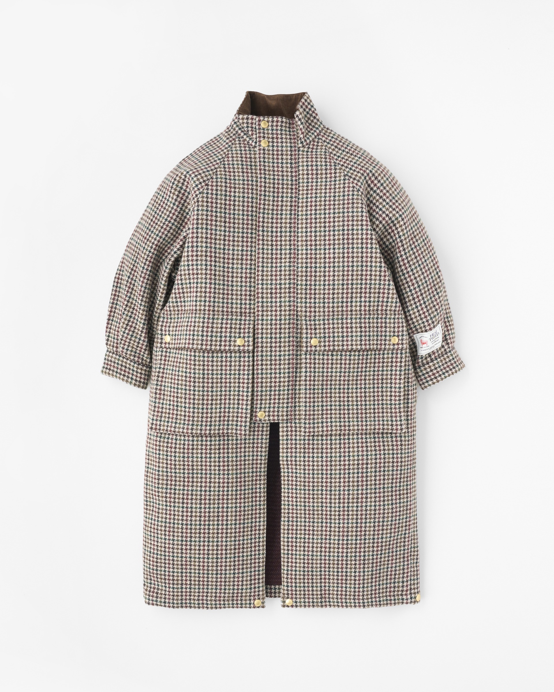 ブランドを代表するスタンドカラーのフィールドコート、ELGIN LONG(エルガン ロング)のヒートツィード製のモデルで、袖を通すと驚くほどの軽さで使い勝手が抜群です。