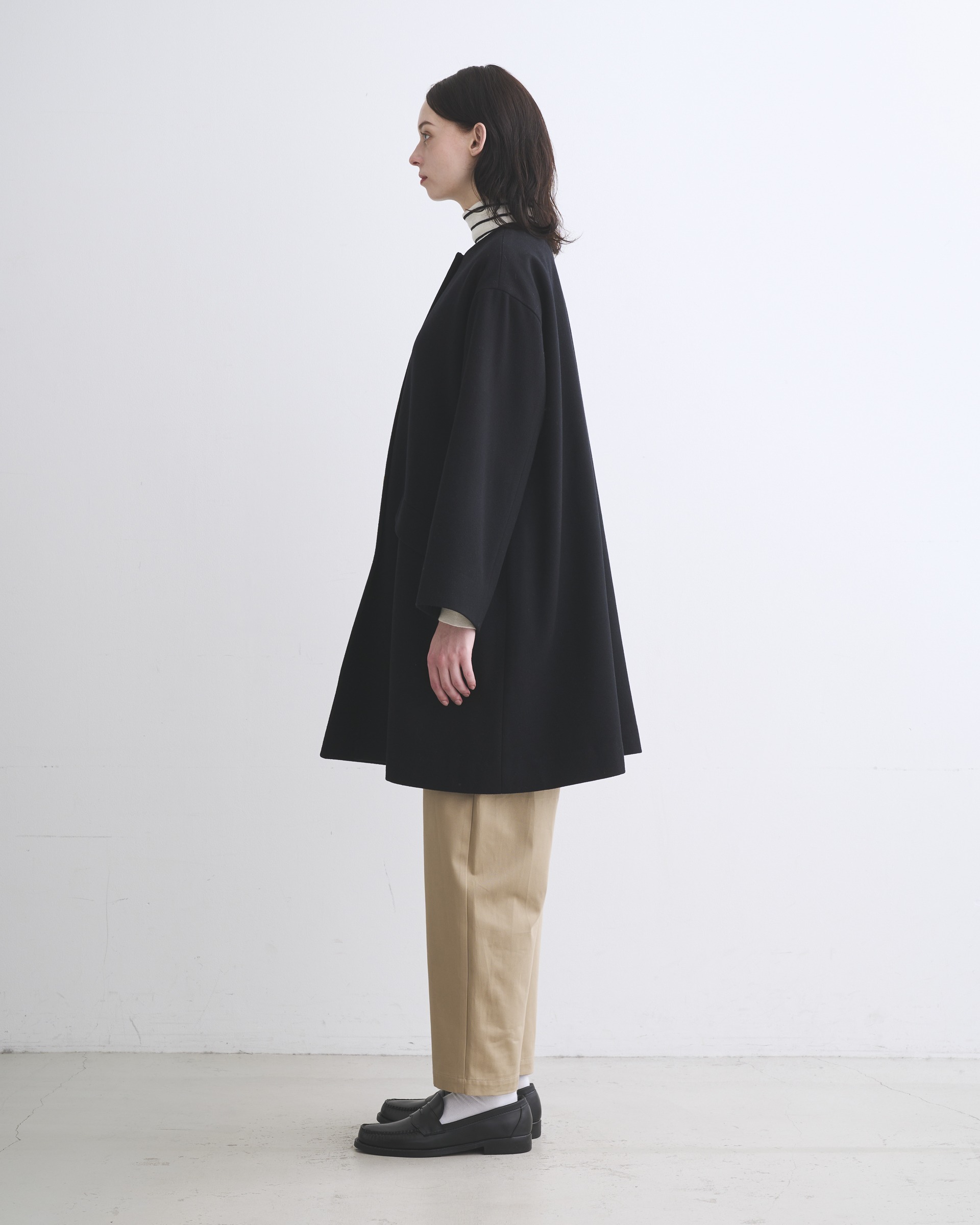柔らかい雰囲気ながらすっきりとしたAラインシルエットが魅力のノーカラーコート、LINTON NO COLLAR(リントン ノーカラー)が新登場。