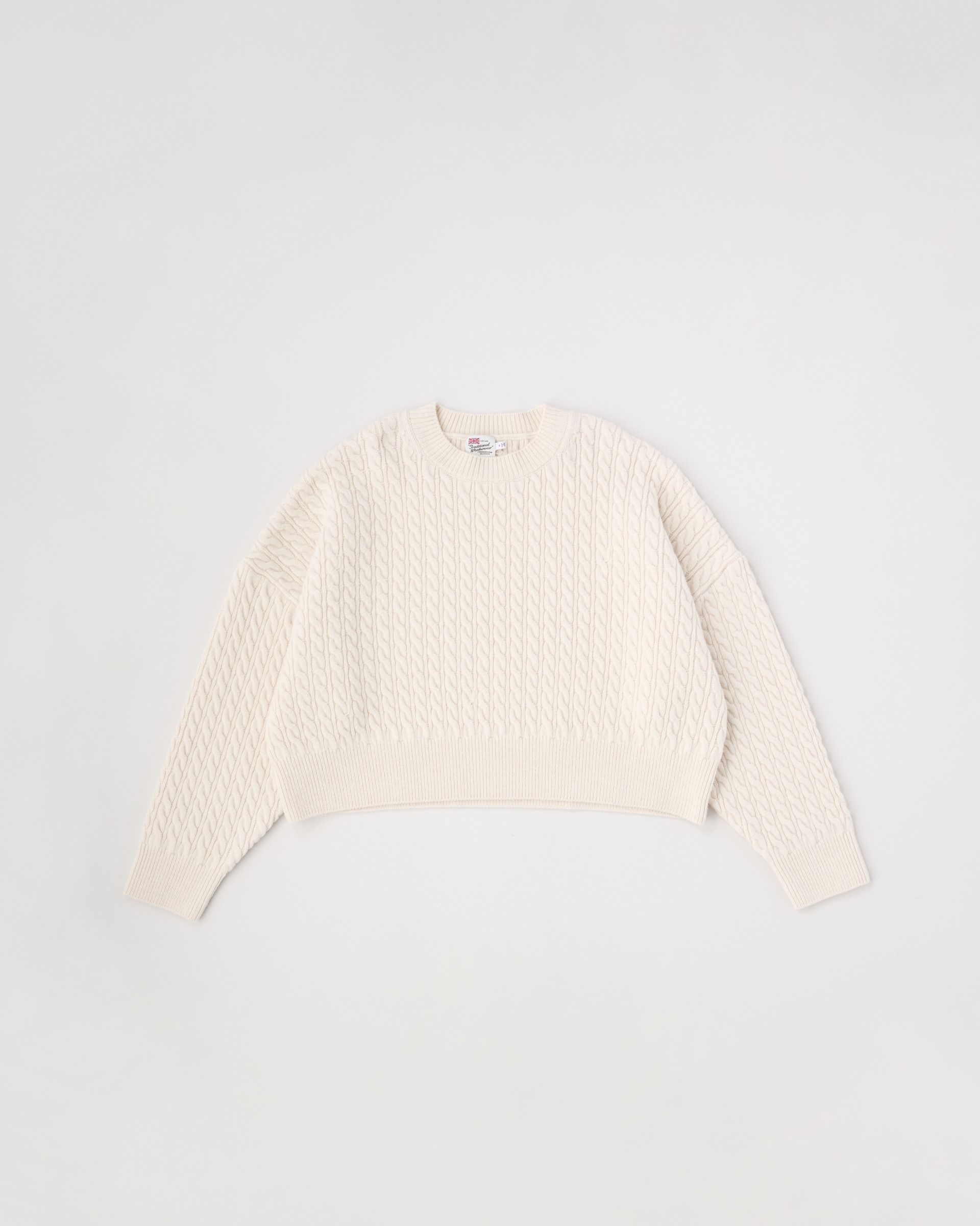 ブランド独自のドロップショルダーと、ゆったりとした身幅が生み出すAラインシルエットが魅力のケーブルニット、STOWMARKET(ストウマーケット)。