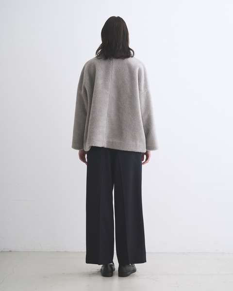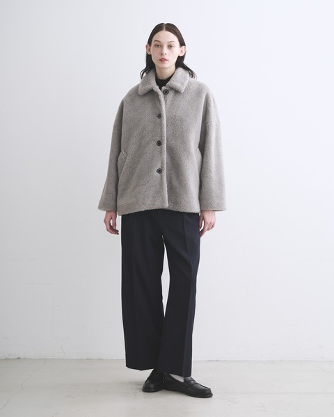 ステンカラーコートのきちんと感がありながら、ゆったりとした優しいシルエットが魅力で、リュクスなドレス感のある装いから、カジュアルなデニムスタイルまで活躍する着る人を選ばない万能コートです。飽きのこないスタンダードなデザインに加え、フロントのロゴ入りボタンがアクセントになっており、着るだけでキマる優れもの。まるで天然のムートンと見紛うような、リュクスで暖かみのある肌触り抜群のエコファー素材を使用したモデルで、軽さと暖かさが魅力です。