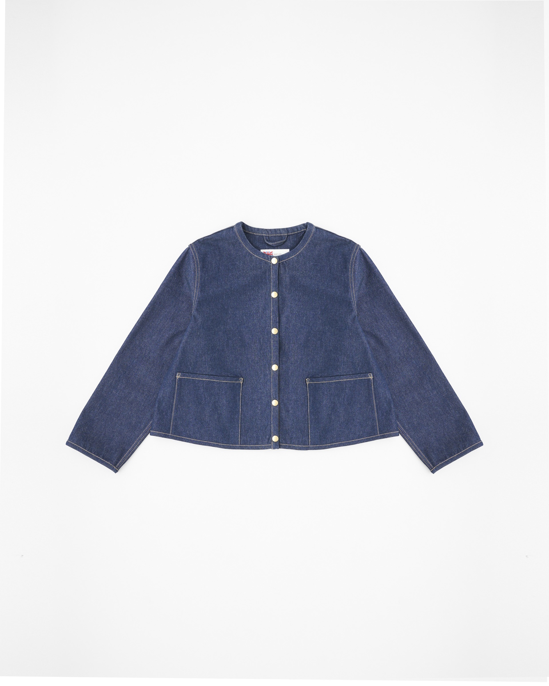ブランドを代表するノーカラーキルティングジャケット、ARKLEY A-LINE(アークリー Aライン)のシルエットはそのままに、デニム素材を使用したアークリー Aライン デニム。