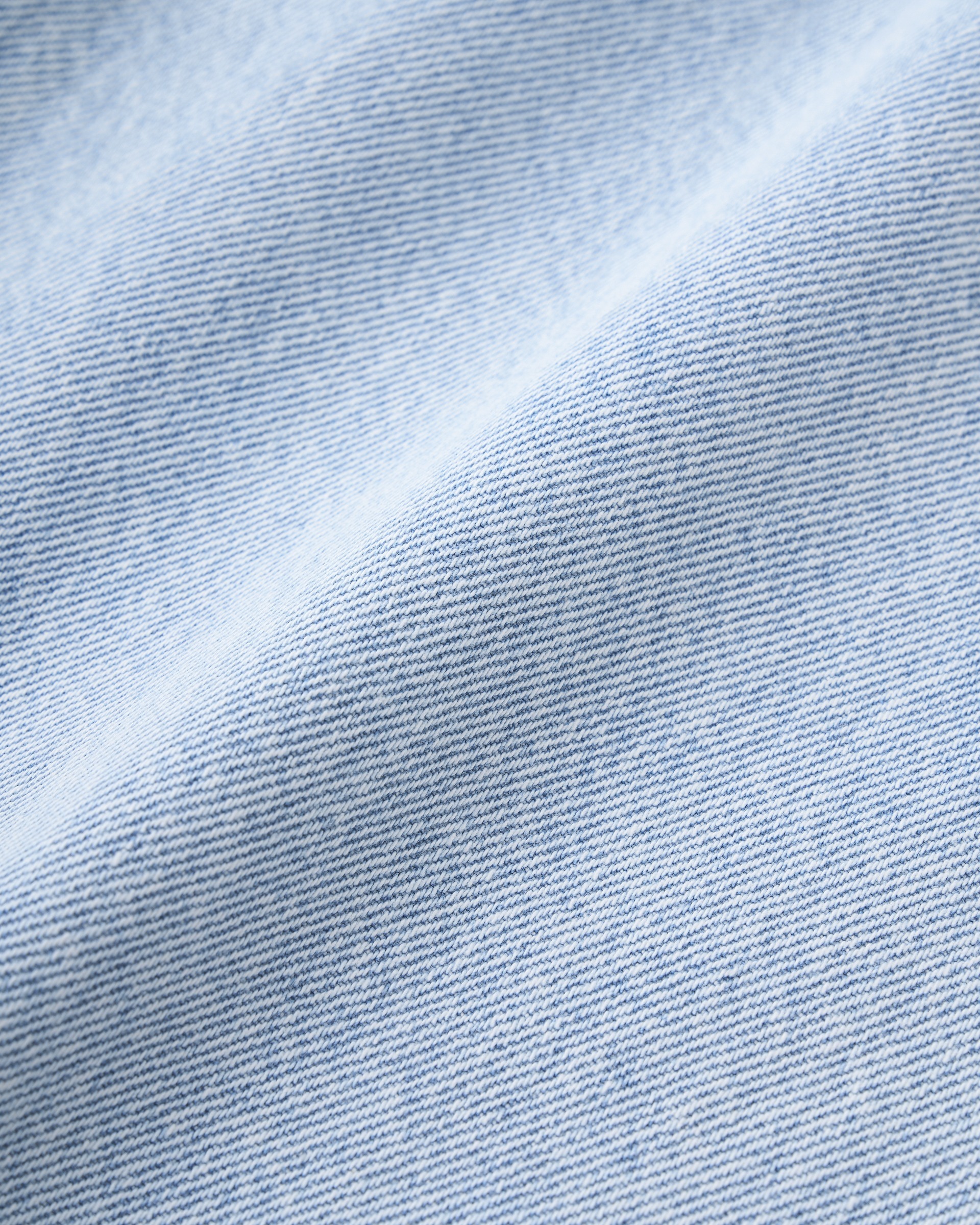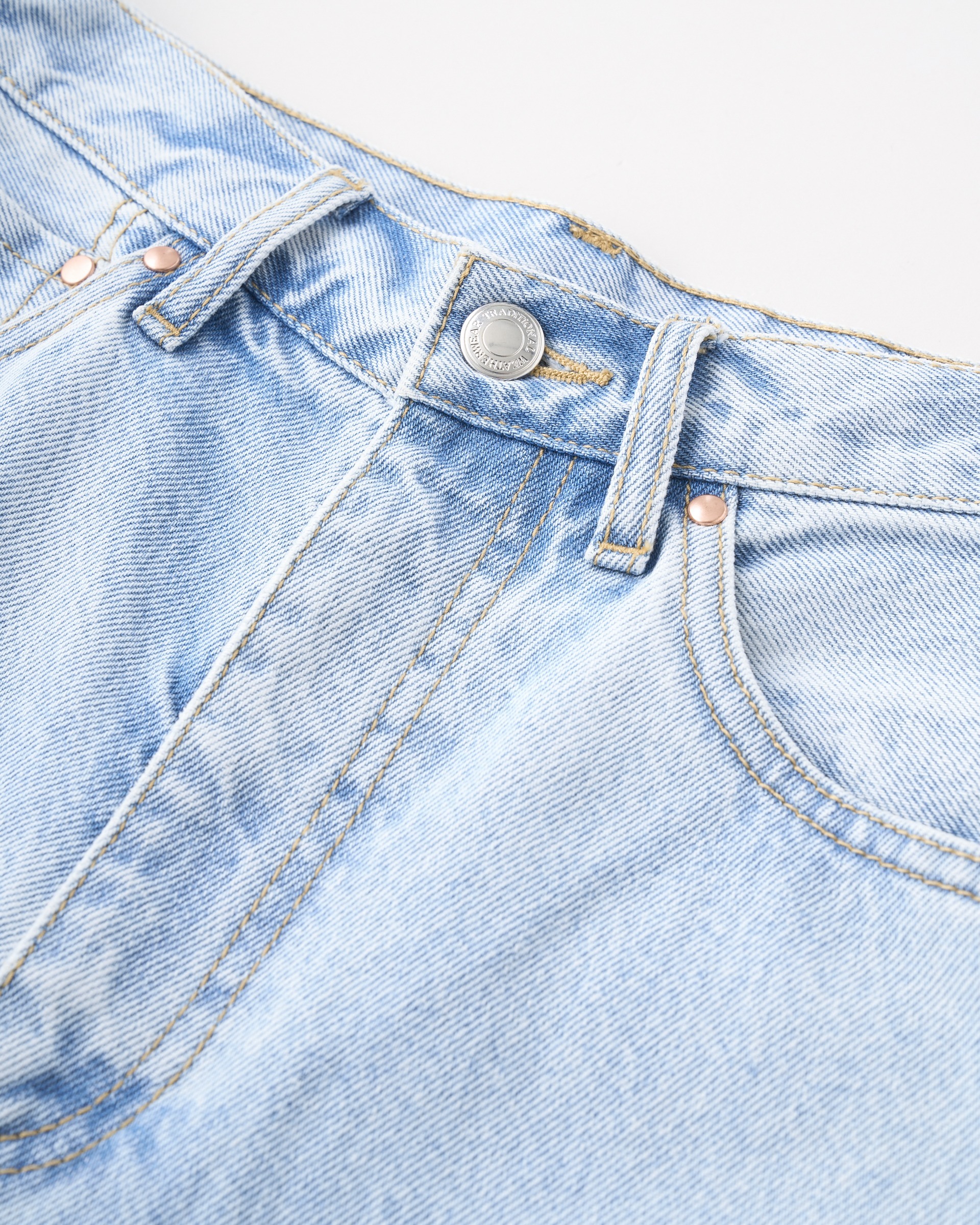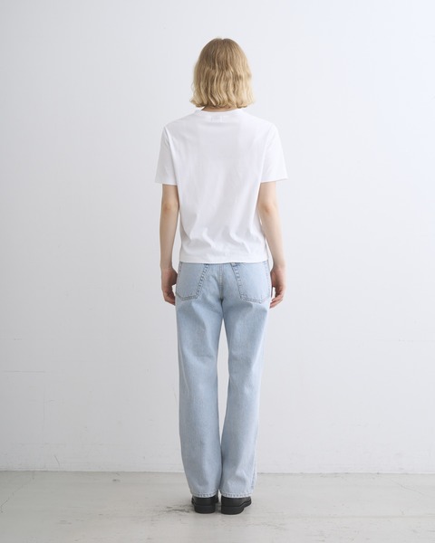 こちらの5ポケットデニムは、ヒップ下から裾にかけてまっすぐに落ちる美しいストレートラインが魅力です。繊細なブリーチ加工を施したデニム素材は、程よいハリが特長で、立体的な美しいシルエットが際立ちます。フロントのポケットに配した補強用のコッパーリベットがきらりと光ります。