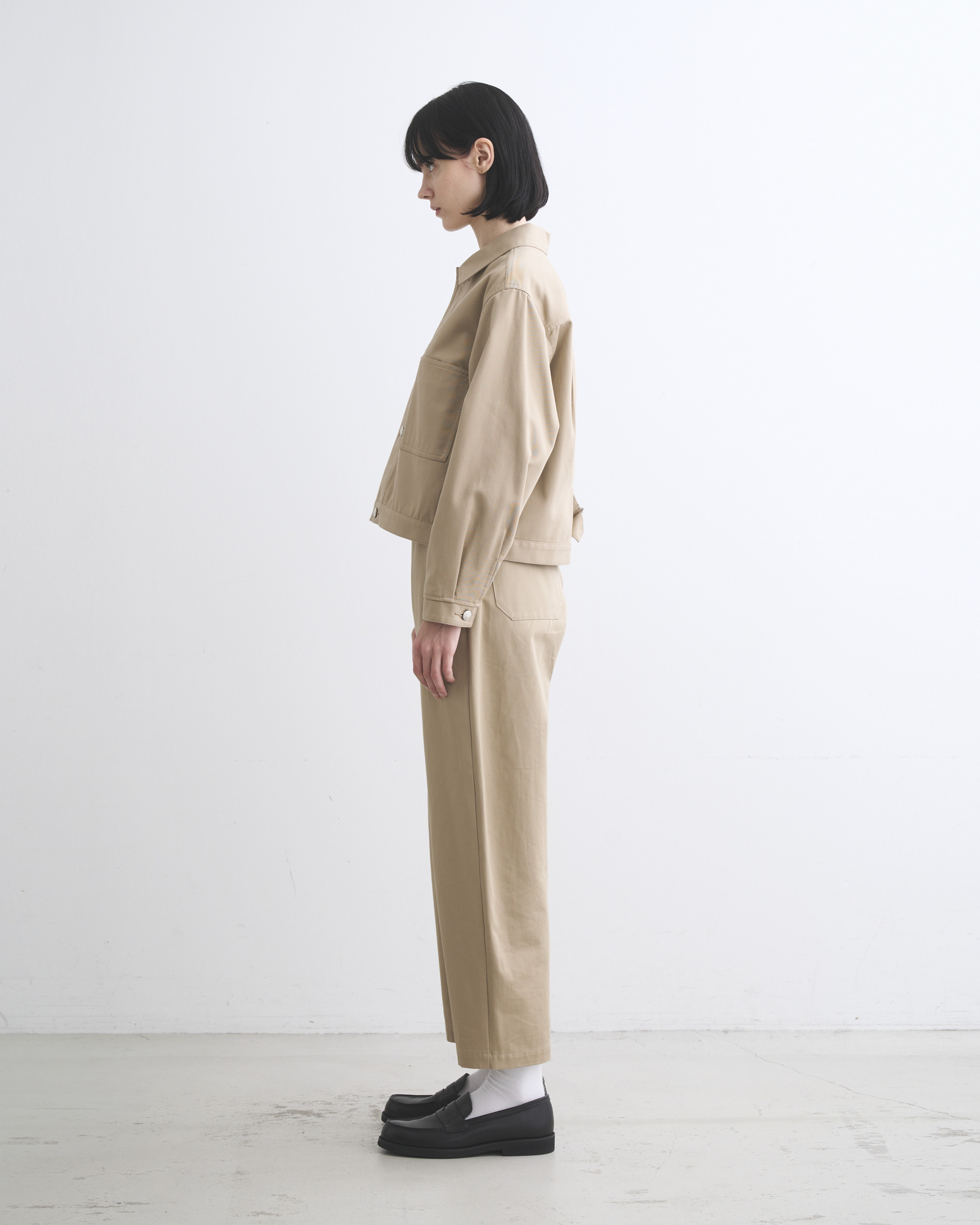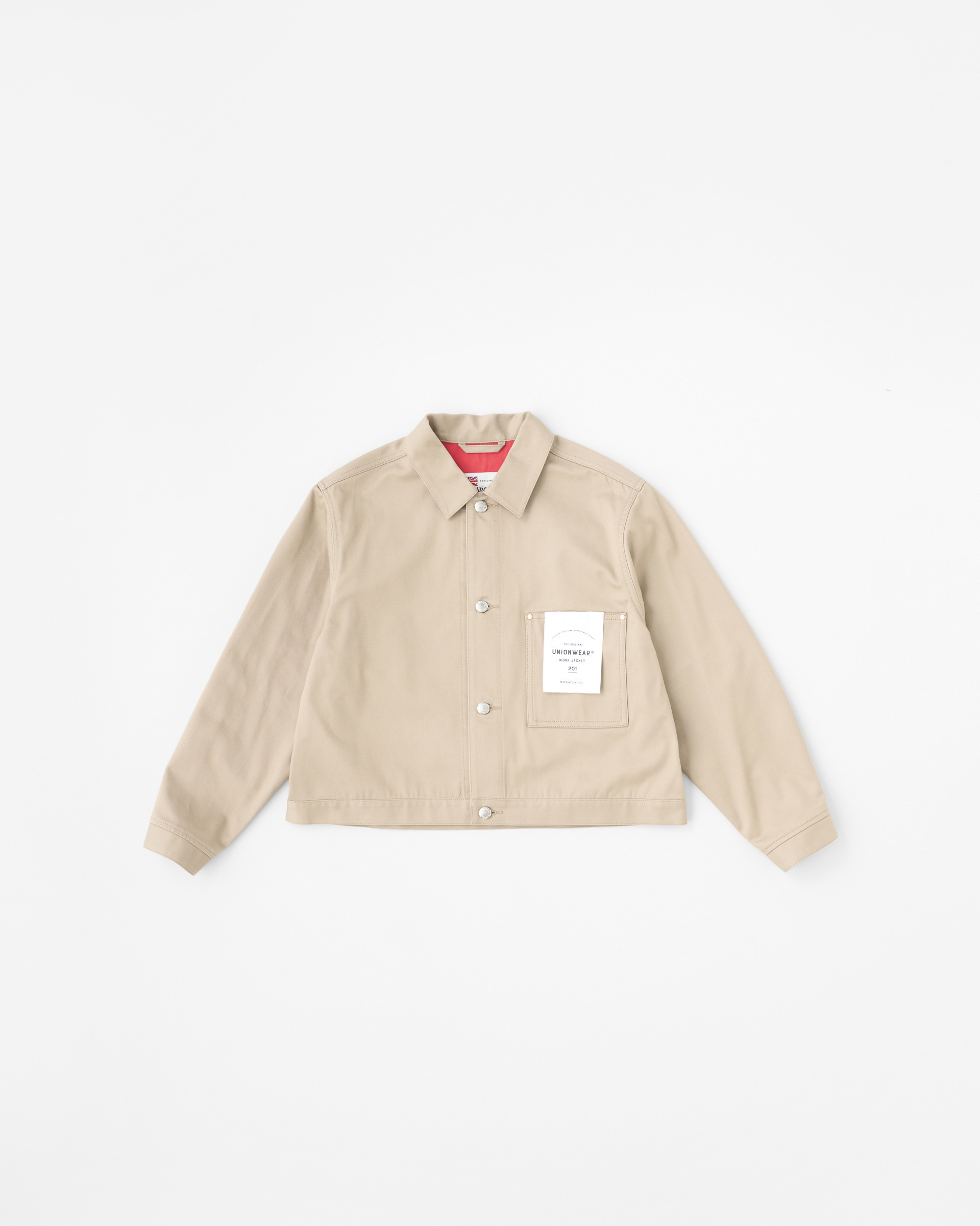 大人気のユニオンシリーズのベストセラーモデル、メンズのWORK JACKET 001のサイズ感を女性用に調整したクリーンなジャケット、 WORK JACKET 201(ワークジャケット 201)のハイカウントチノ製モデル。