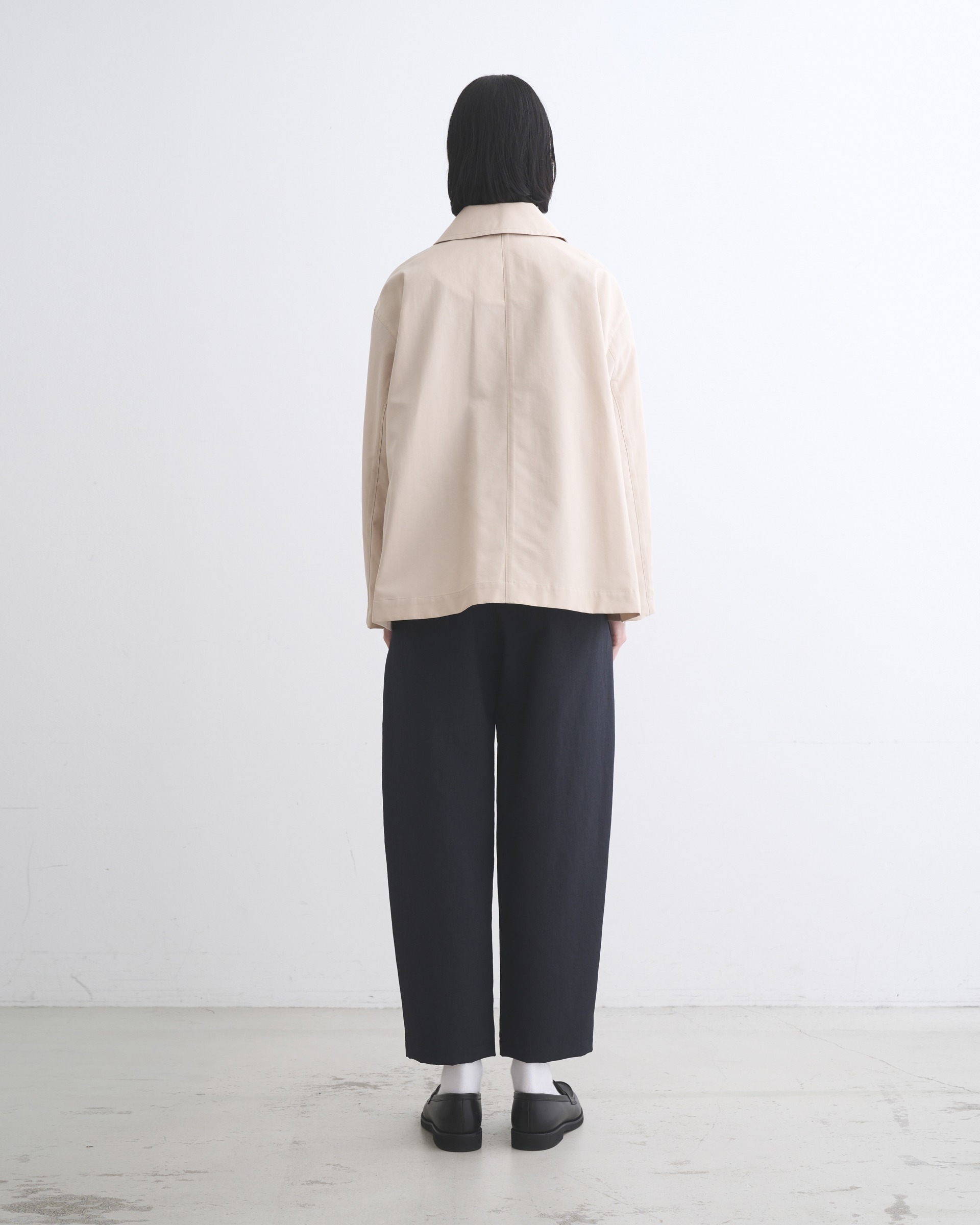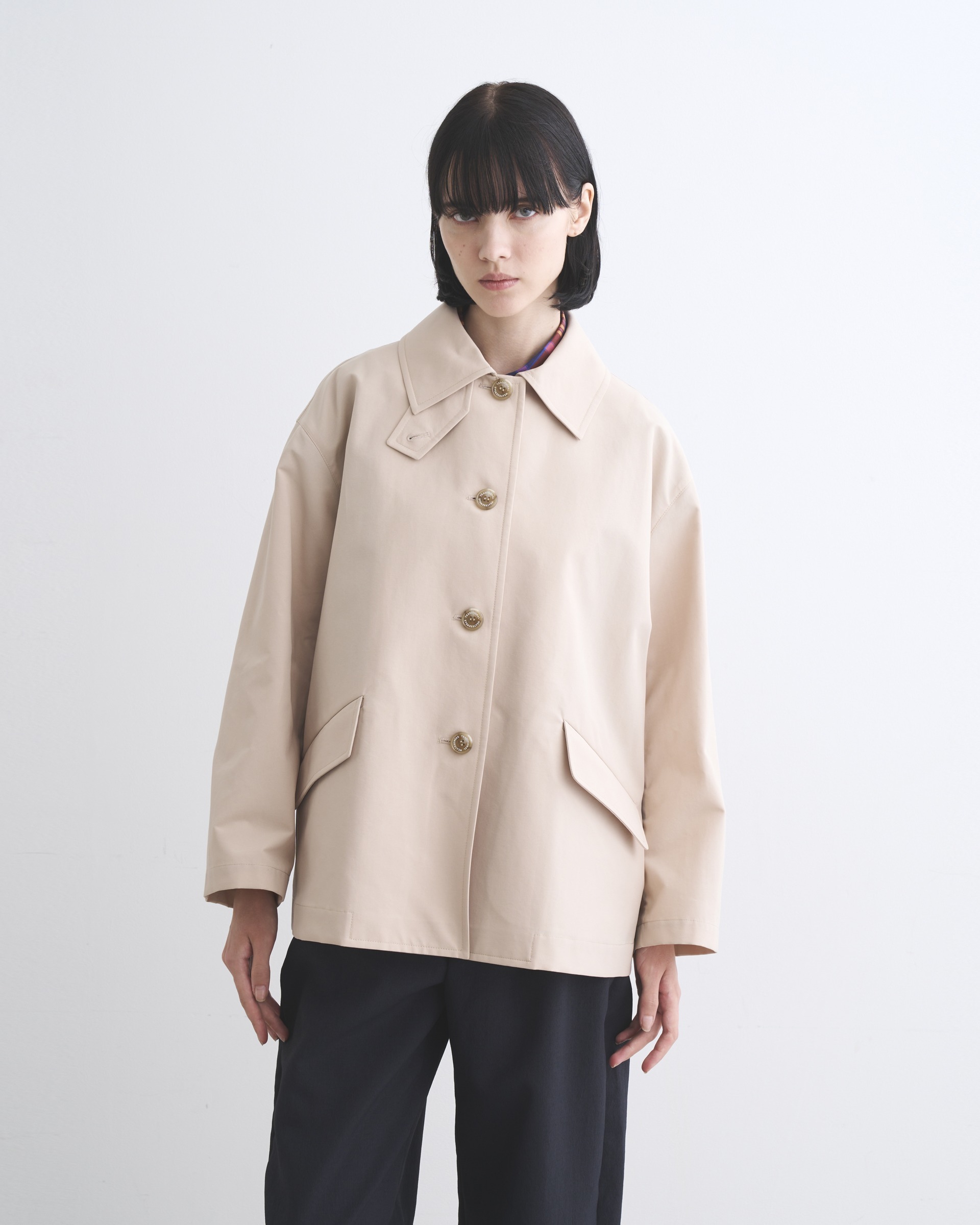 コンパクトな肩回りでAラインシルエットのショート丈のコート、LINTON SHORT(リントン ショート)に軽快なコットンポリエステル製のモデルが新登場。