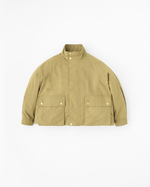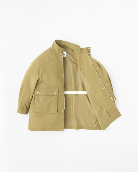 こちらは英国伝統のフィールドジャケットの襟をスタンドカラーにしたモデルで、背中のアンブレラヨークが特長です。内側に折り返してスナップボタンを留めると着丈が17cm程短くなり、フィールドジャケットがショートブルゾンに早変わり。折り返して短くなった裾の部分がふんわりとして柔らかな印象です。