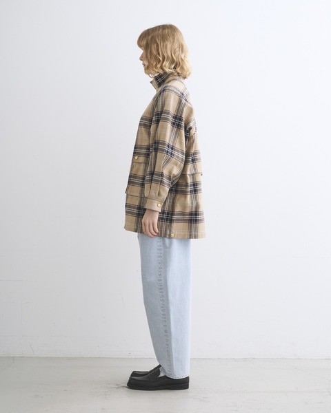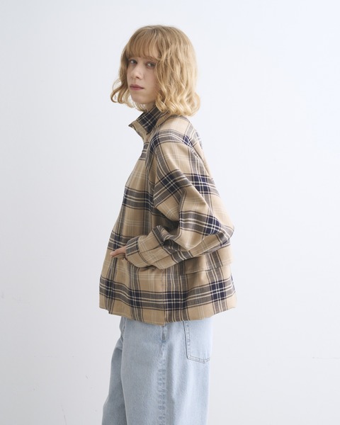 ベージュ×ネイビーのタータンチェック柄とベージュ×オレンジ×ブラウンのガンクラブチェック柄の2色展開です。