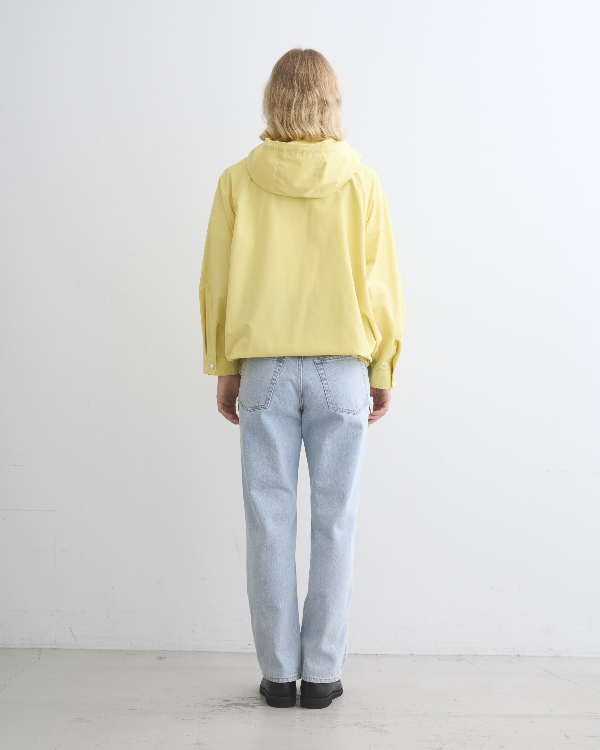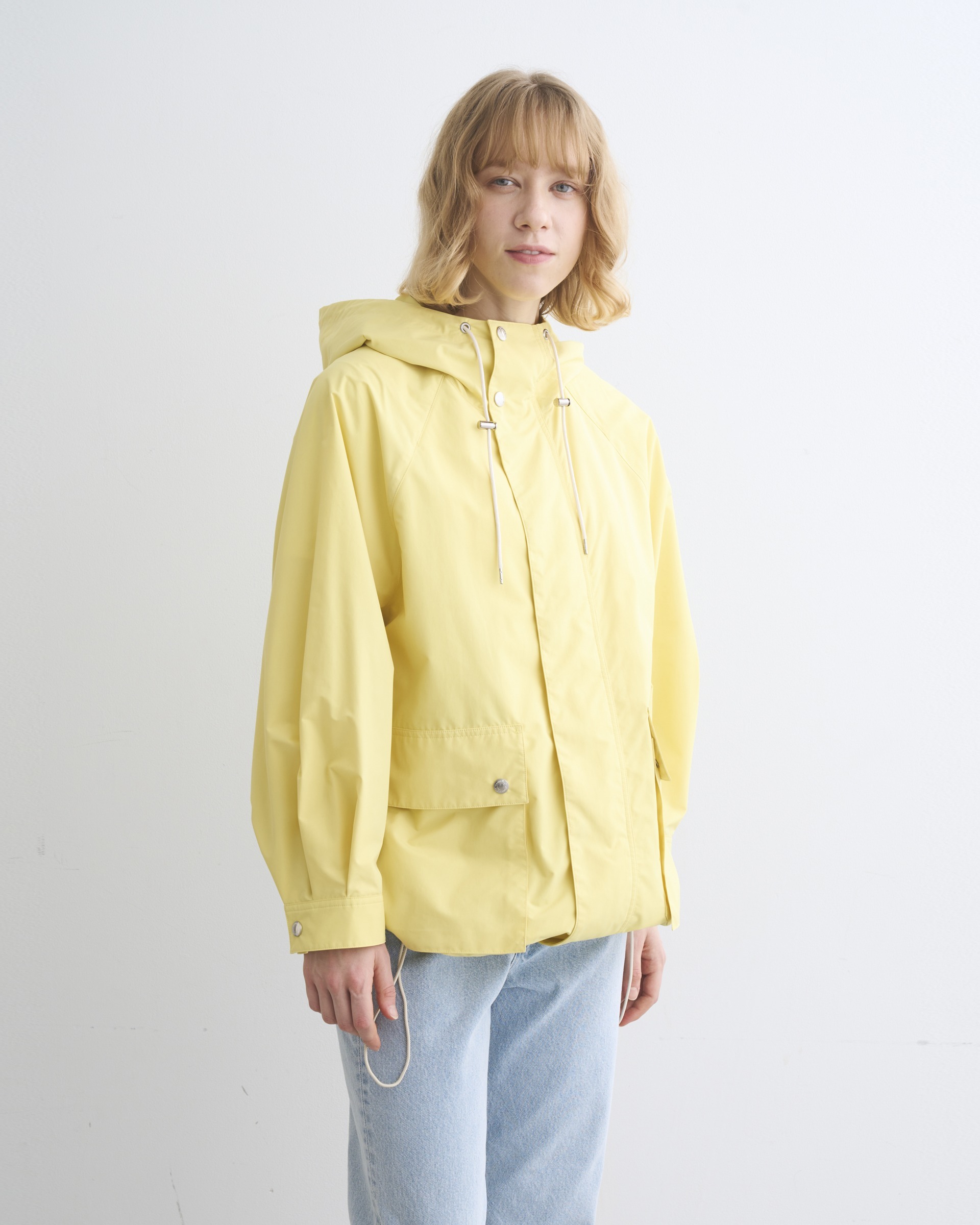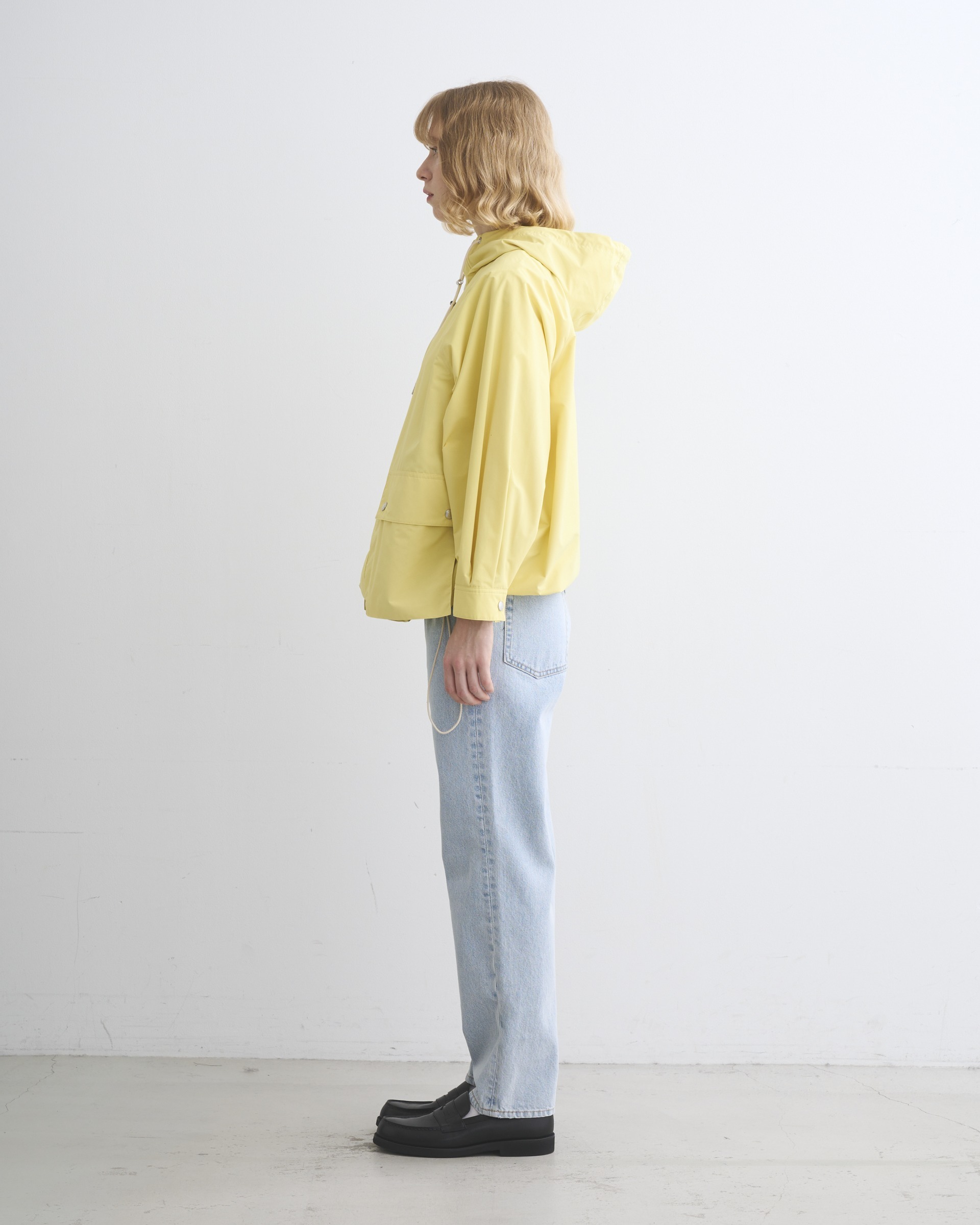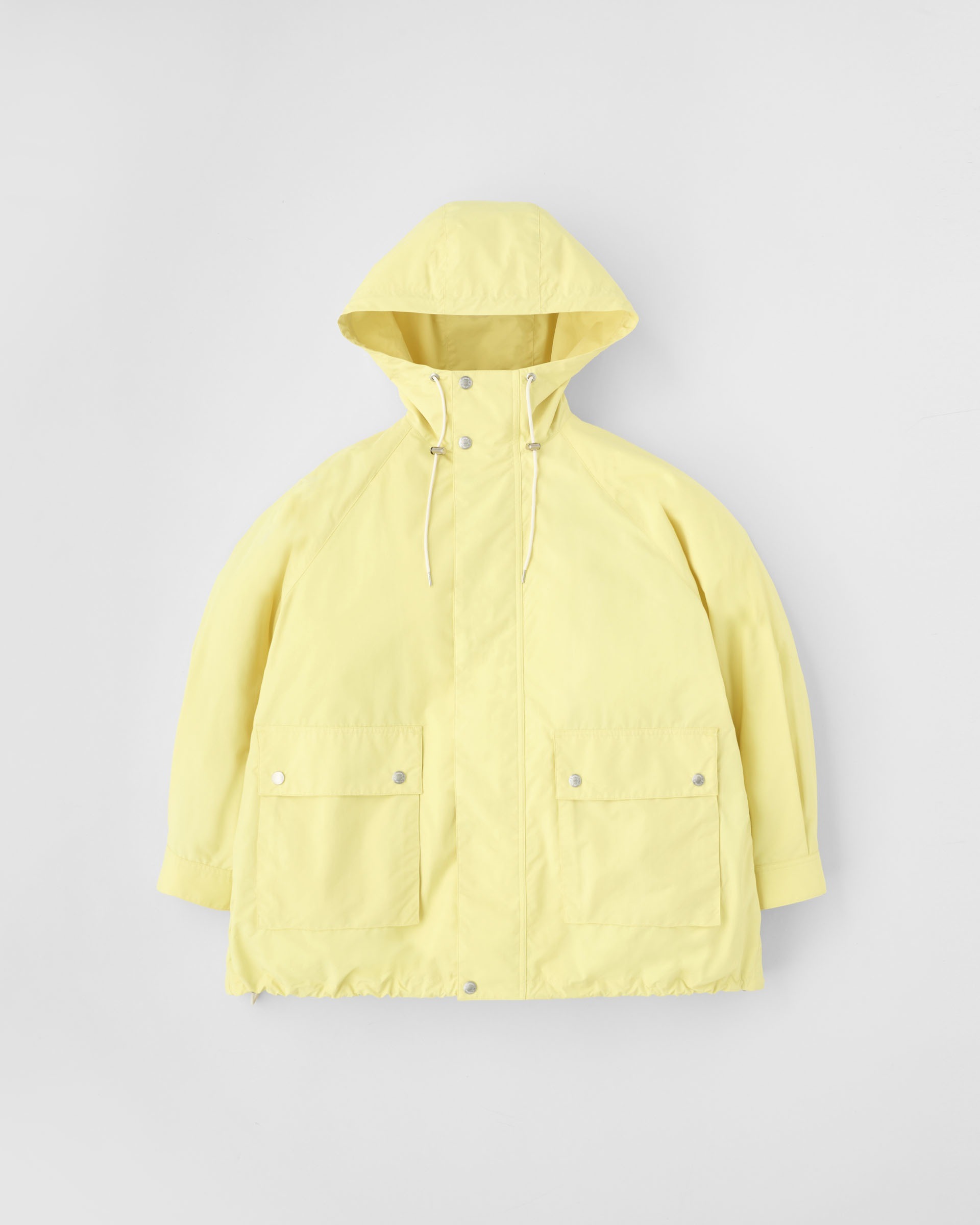 春夏シーズンのアウターウェアに欠かせない2大定番生地のひとつ、E生地はポリエステルをゆっくりと繊細に織り上げたもので、軽くてしなやかでフラットな表情のあるファブリックです。撥水性もあり、レインジャケットとしても活躍します。