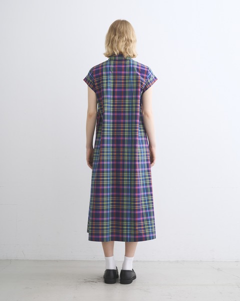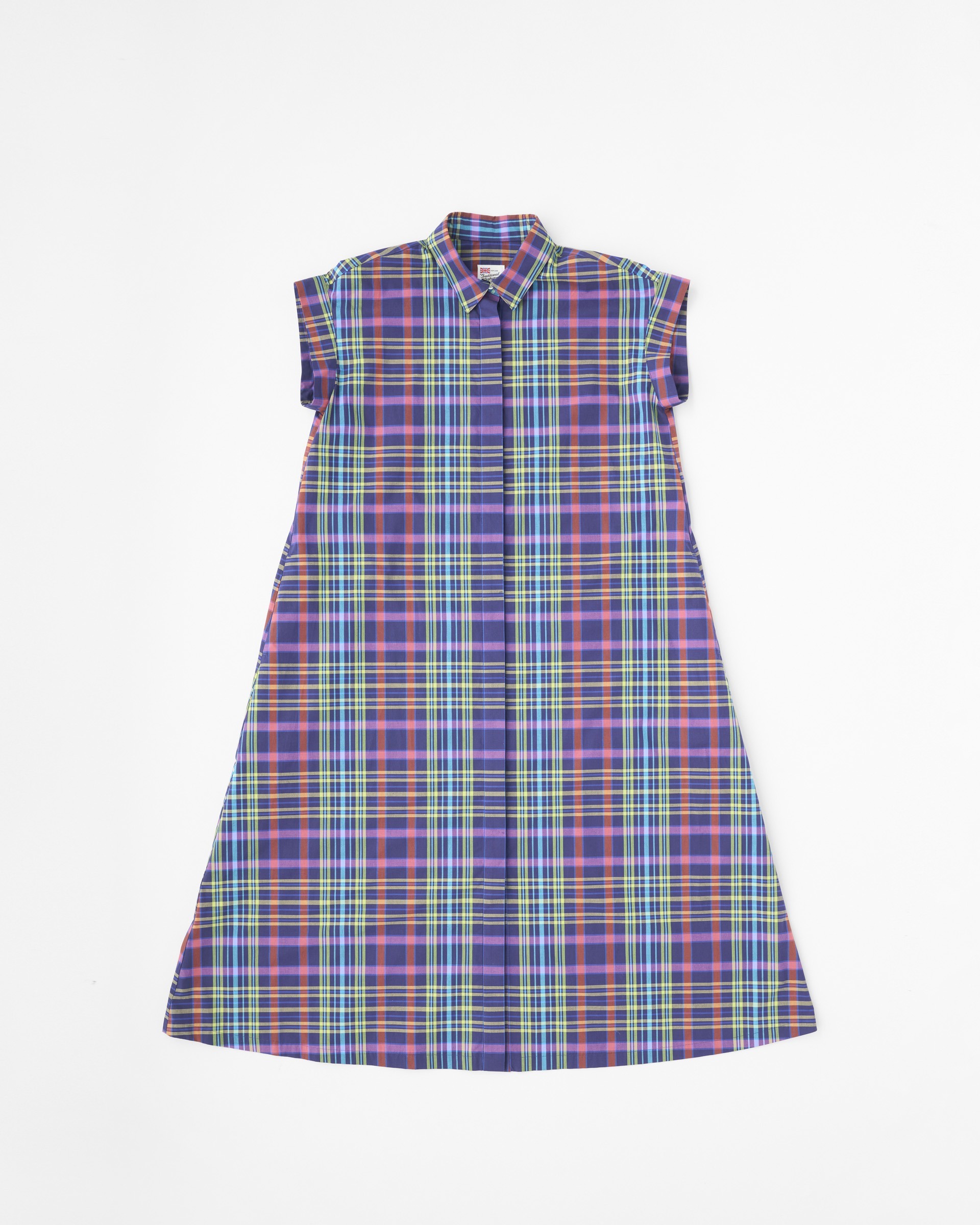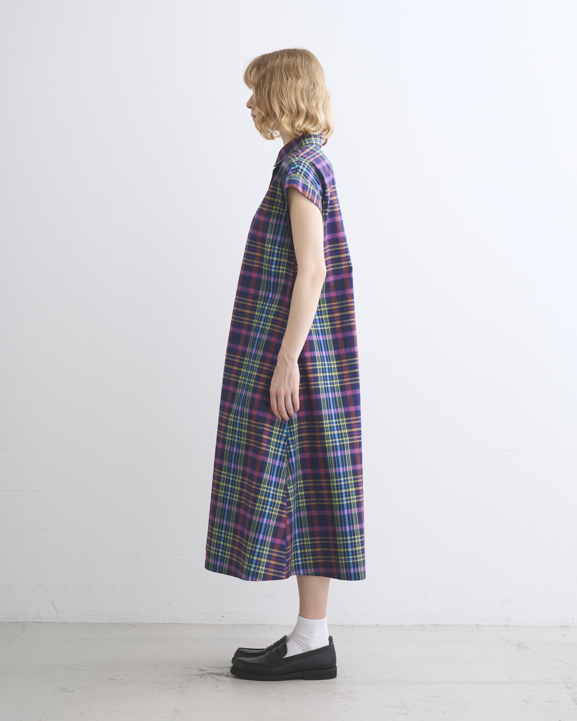 こちらのラスキントンは、すっきりとした肩回りと、ゆったりとした身幅が作り出すリラックスした雰囲気が魅力のワンピースです。小さな襟と比翼仕立てのフロント仕様がエレガントな印象に。上質なコットンの糸を高密度に織り上げたハリのあるタイプライター素材を使用しているので、立体的な美しいシルエットが際立ちます。