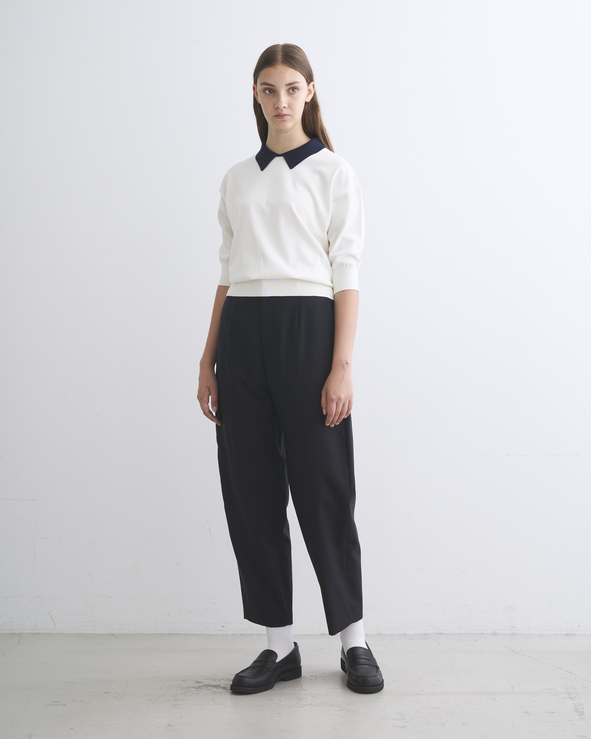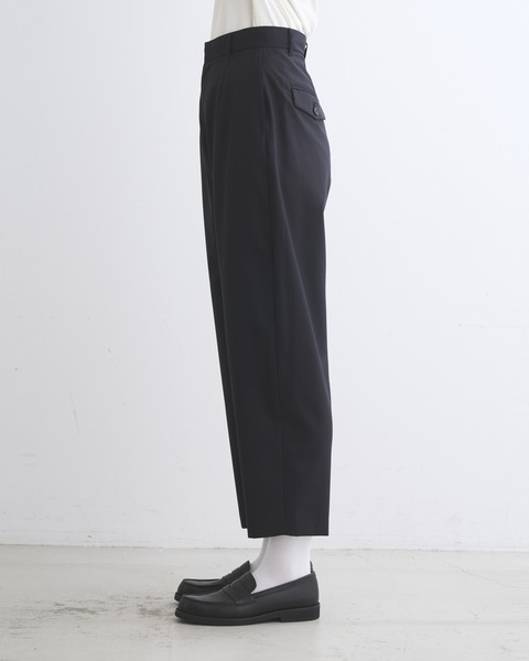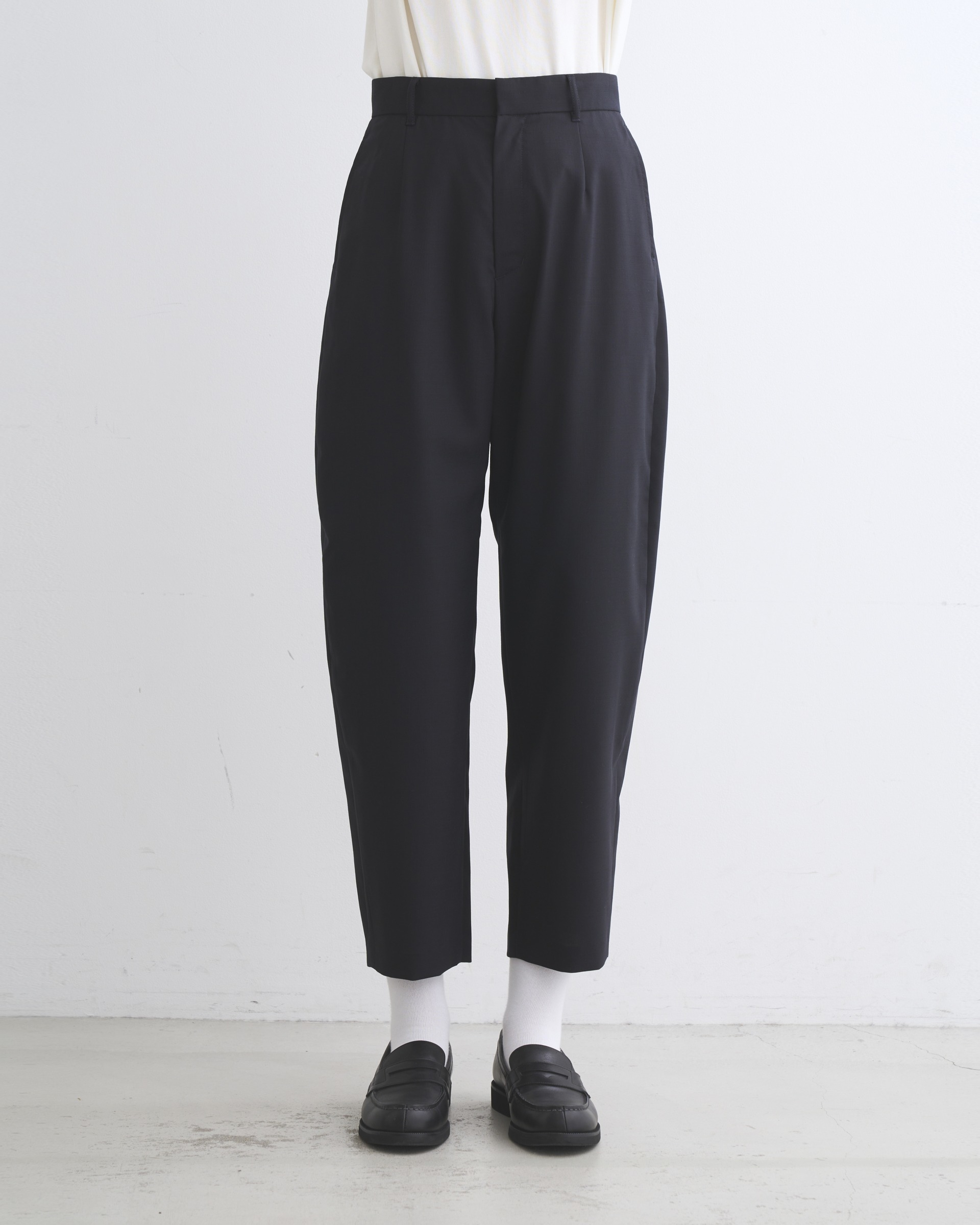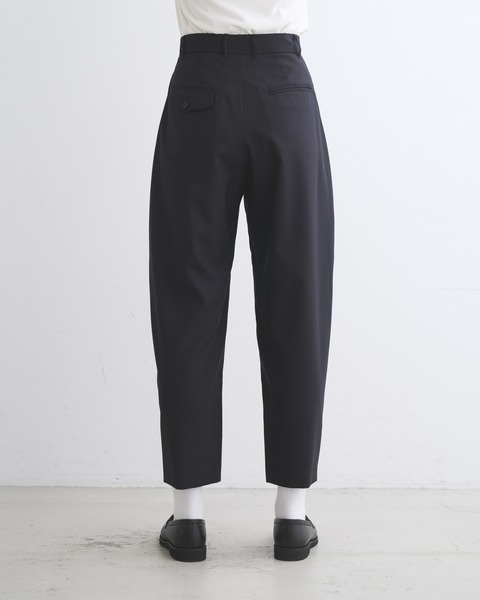 こちらのユニオンスラック 303は、フロントポケットの下からサイドシームにそって緩やかにカーブする美しいシルエットが魅力です。上質な細番手のウールを丁寧に織り上げた通気性の良い素材を使用しており、その落ち感のある素材からゆったりした品の良いシルエットが生まれます。肌触りもドライで通年使用できる優れものです。