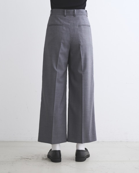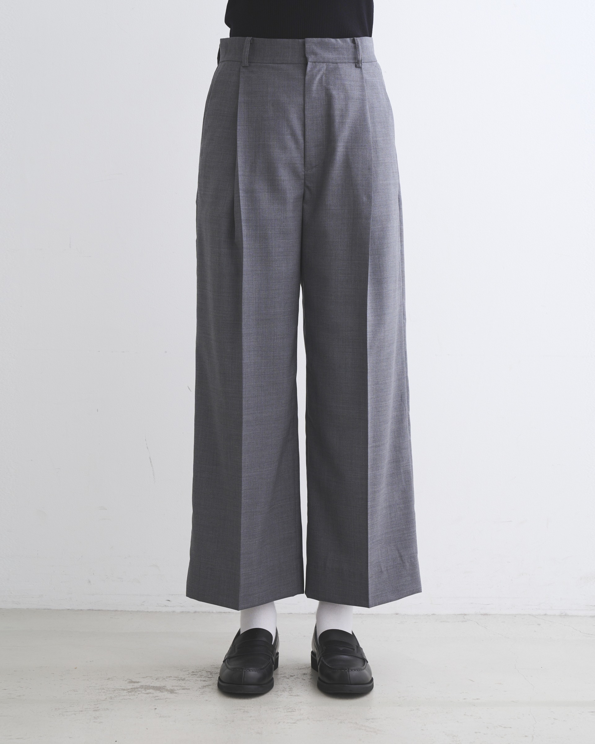 こちらのユニオンスラック 308は、ワイドシルエットに深めのタックが入ったパンツで、横から見ると存在感のある太さですが、正面からはすっきりとした見た目になるように計算されています。上質な細番手のウールを丁寧に織り上げた通気性の良い素材を使用しており、その落ち感のある素材からゆったりした品の良いシルエットが生まれます。肌触りもドライで通年使用できる優れものです。
