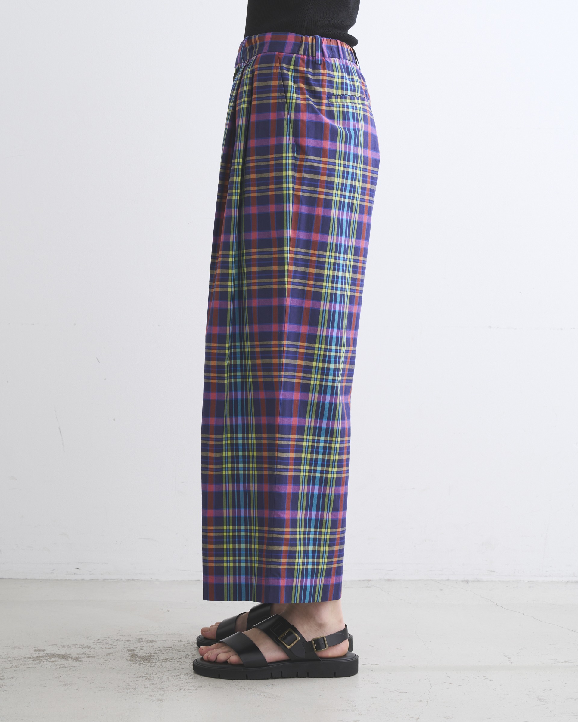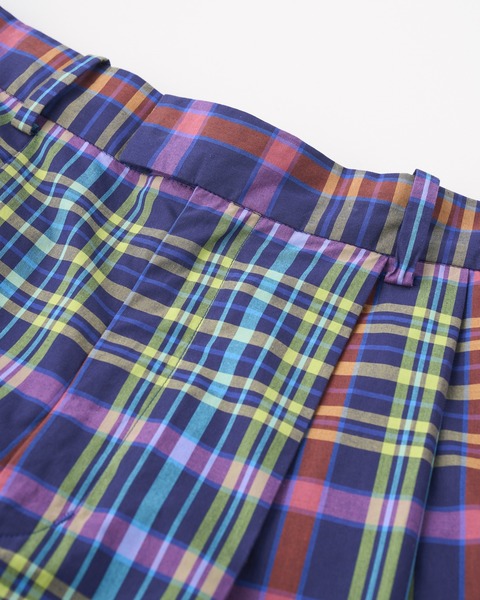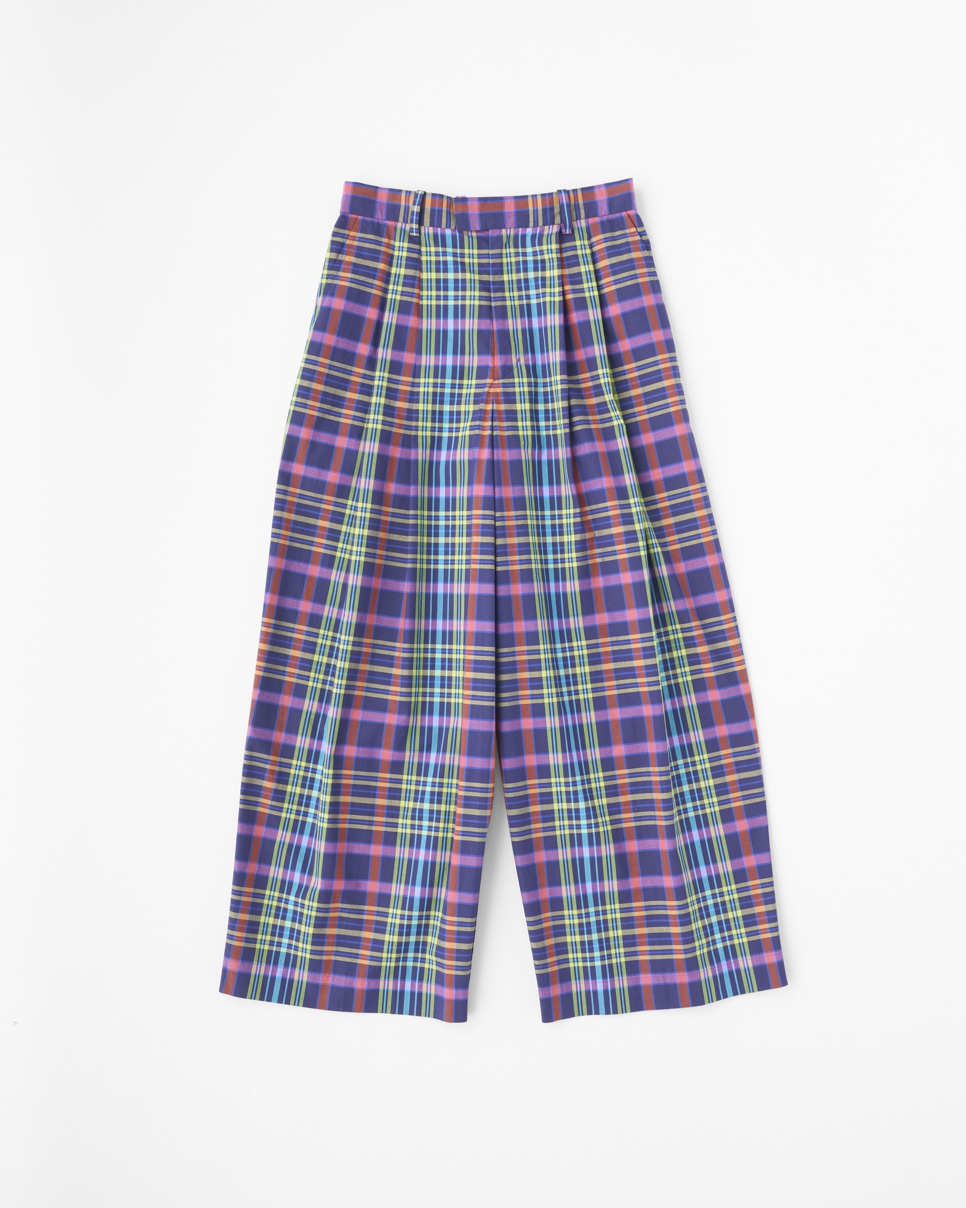 8色のカラフルな糸を用いた存在感のあるチェックが夏らしいワイドパンツ、リュイシャム。