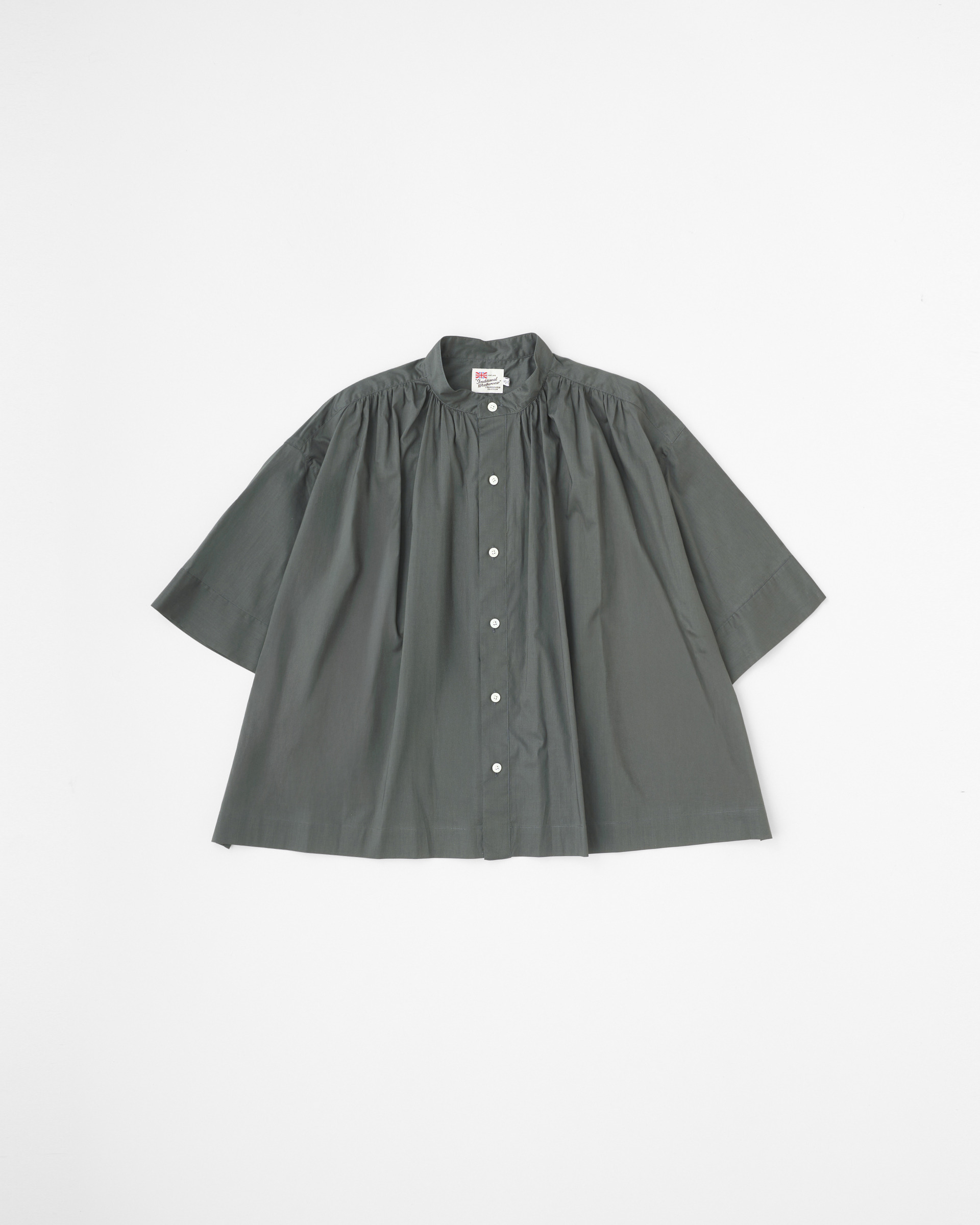 こちらのブラウスは、丸みのある優しいフォルムが特長で、きちんと感のある装いからカジュアルなスタイルまで活躍する万能アイテムです。ゆったりとした袖幅と身幅が作り出すリラックスした雰囲気は唯一無二。細番手の糸を甘めに織った英国リバティのコットンのローン素材は、抜群の着心地で通年使用できる優れものです。ふくらみのある柔らかな素材感が生み出す優しい雰囲気と、きれいな色目も魅力です。