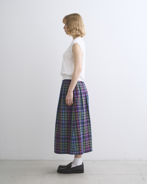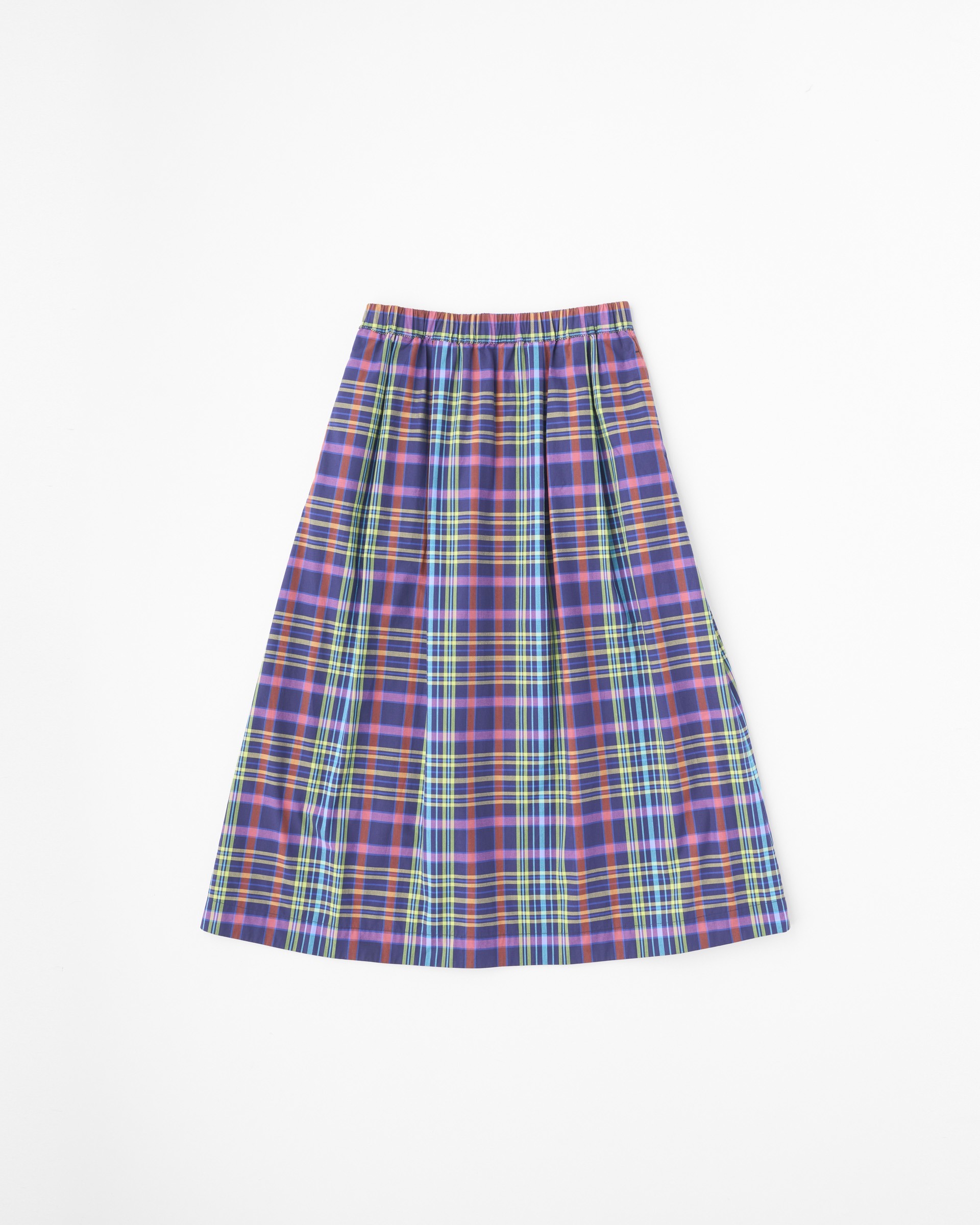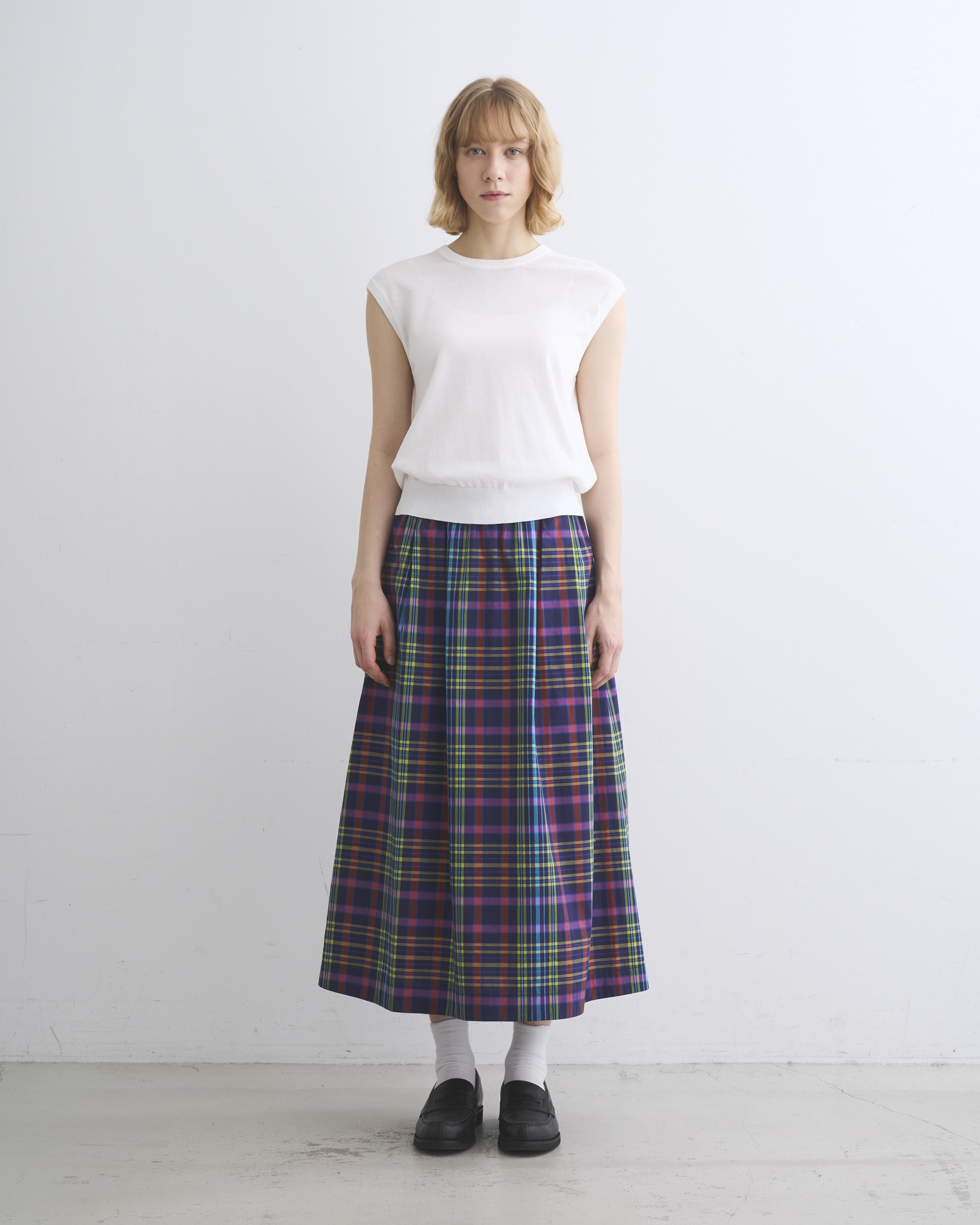 8色のカラフルな糸を用いた存在感のあるチェックが夏らしいギャザースカート、PARKESTON(パークストン)。